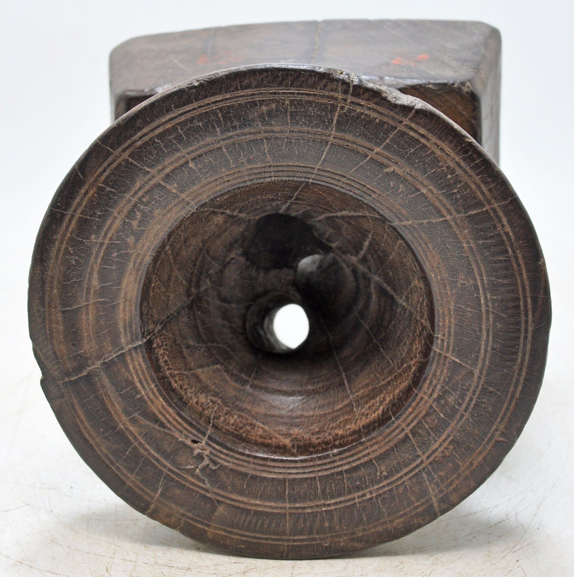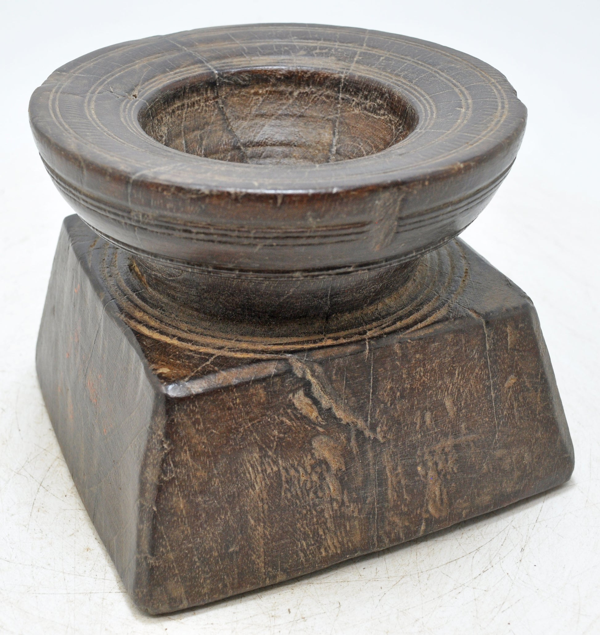 A remarkable, early farming utensil, this wooden item originates from the diverse cultural landscape of India. It was historically essential for distributing grain and other propagation matter during the planting cycle. The singular, appealing geometry reflects an entirely handmade construction process that ensured functional elegance. Its state of preservation is outstanding, highlighted by a rich, developed surface luster. Acquire a tangible link to agrarian life before mechanization revolutionized agriculture