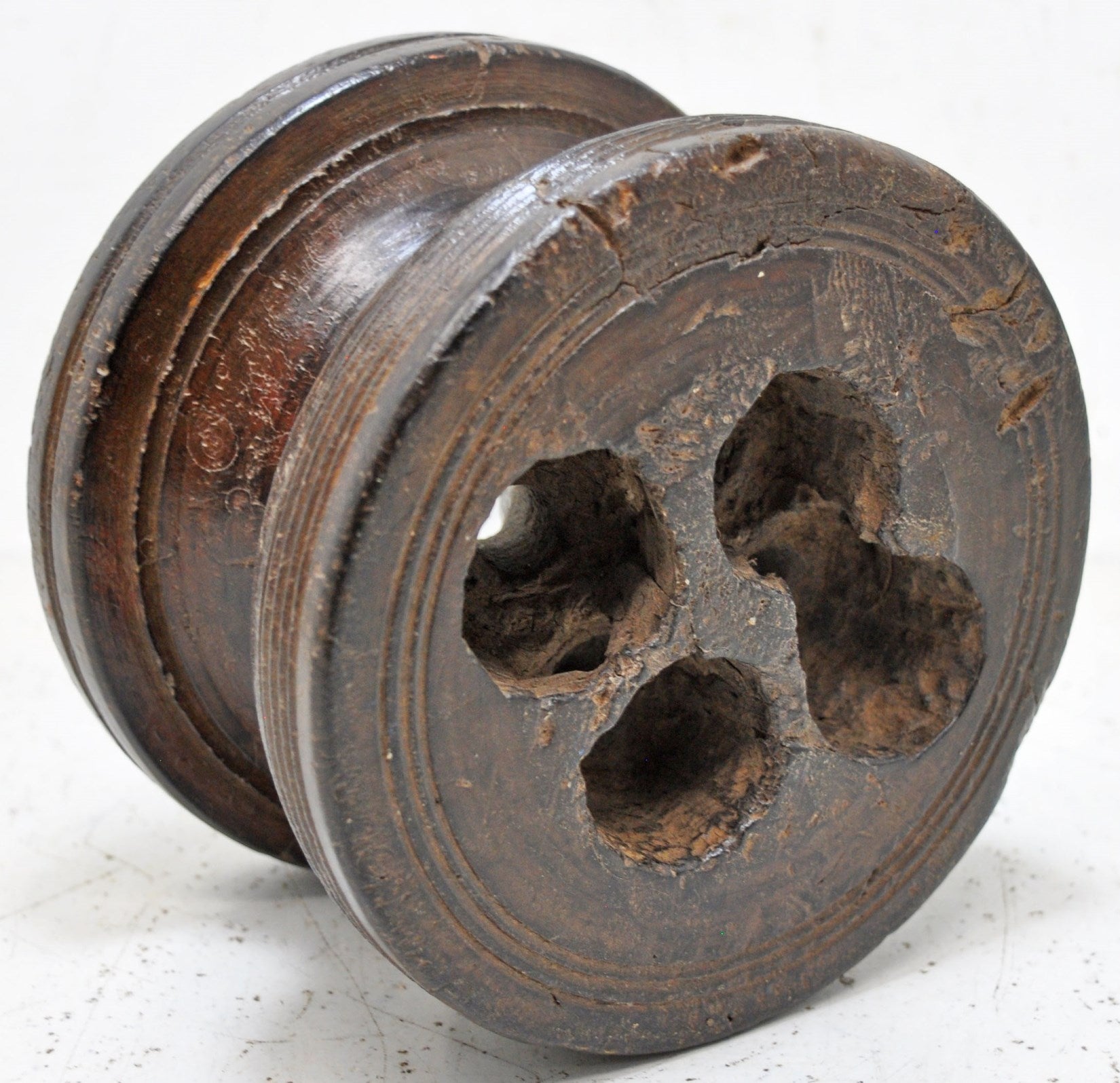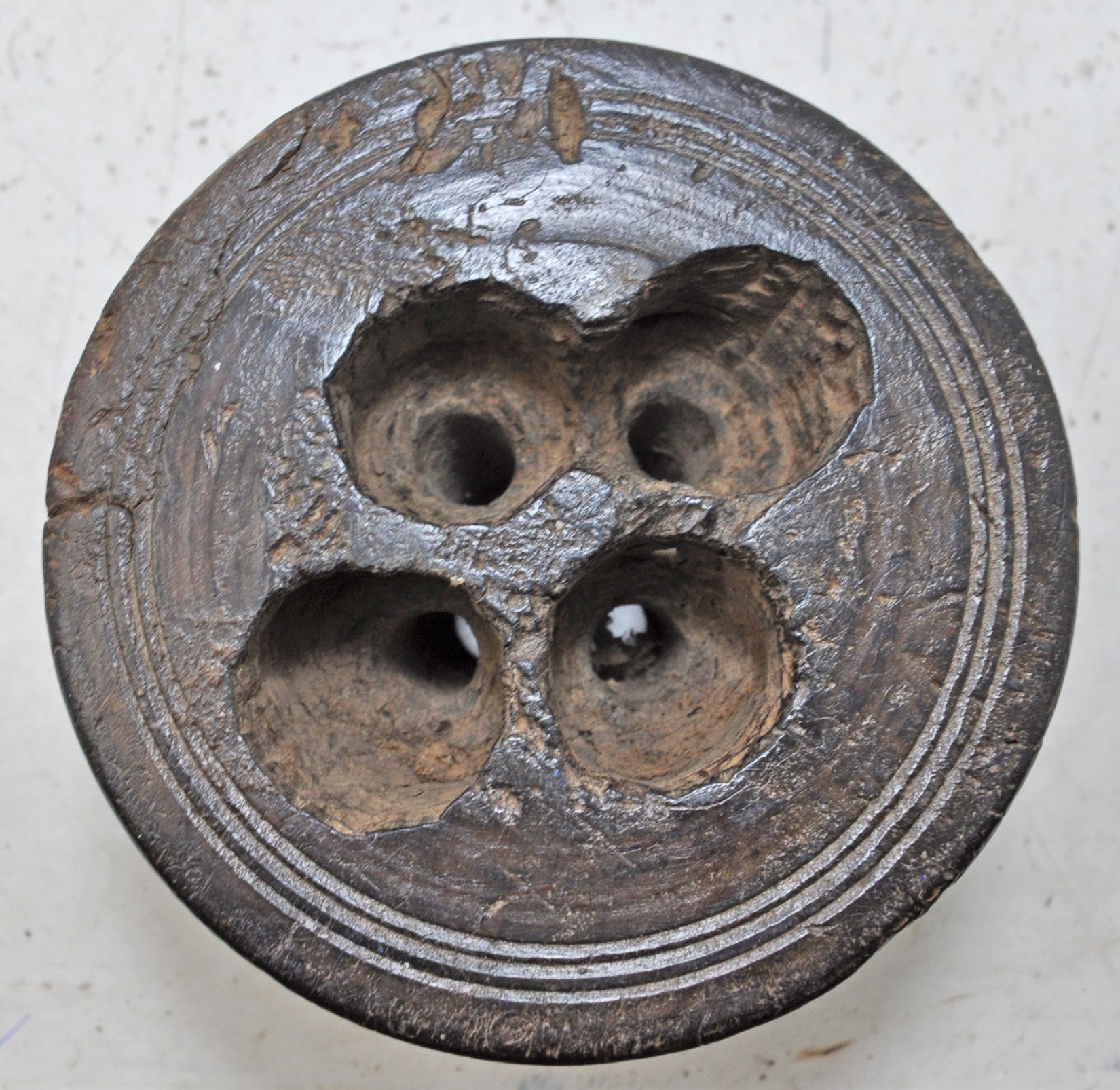 A nice looking old wooden seeder, originally used to plant seeds in farms. Hand carved in a nice shape. Good condition and a rich patina. Origin India.