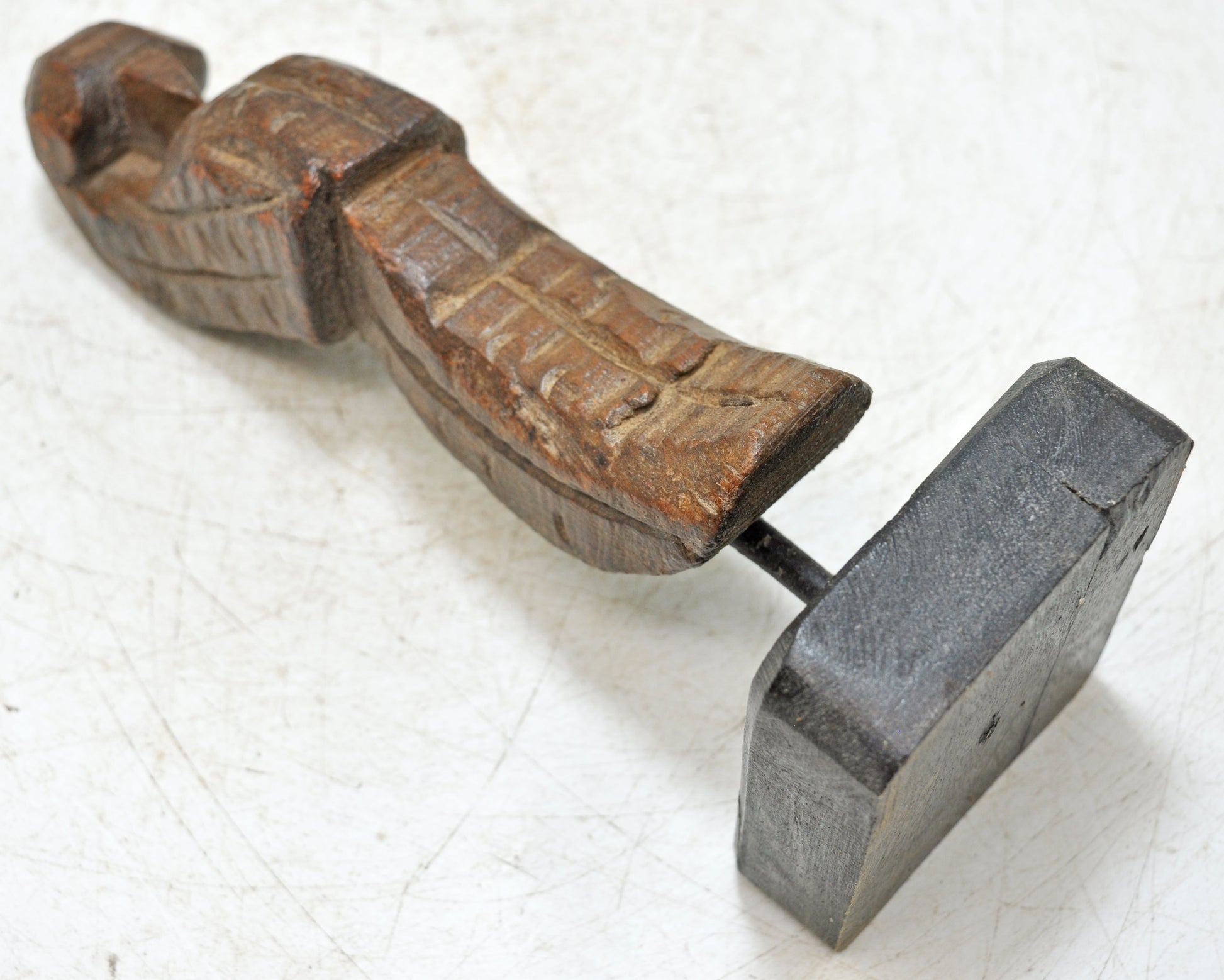 This antique wooden bird figurine has been skillfully hand carved, showcasing refined details that highlight the bird’s delicate features. Its small size makes it ideal for display on shelves, tabletops, or within a curated collection. The figurine is in very good condition, featuring a warm, natural patina that enhances its vintage appeal. Crafted in India, it represents traditional artistry and expert woodcraft.