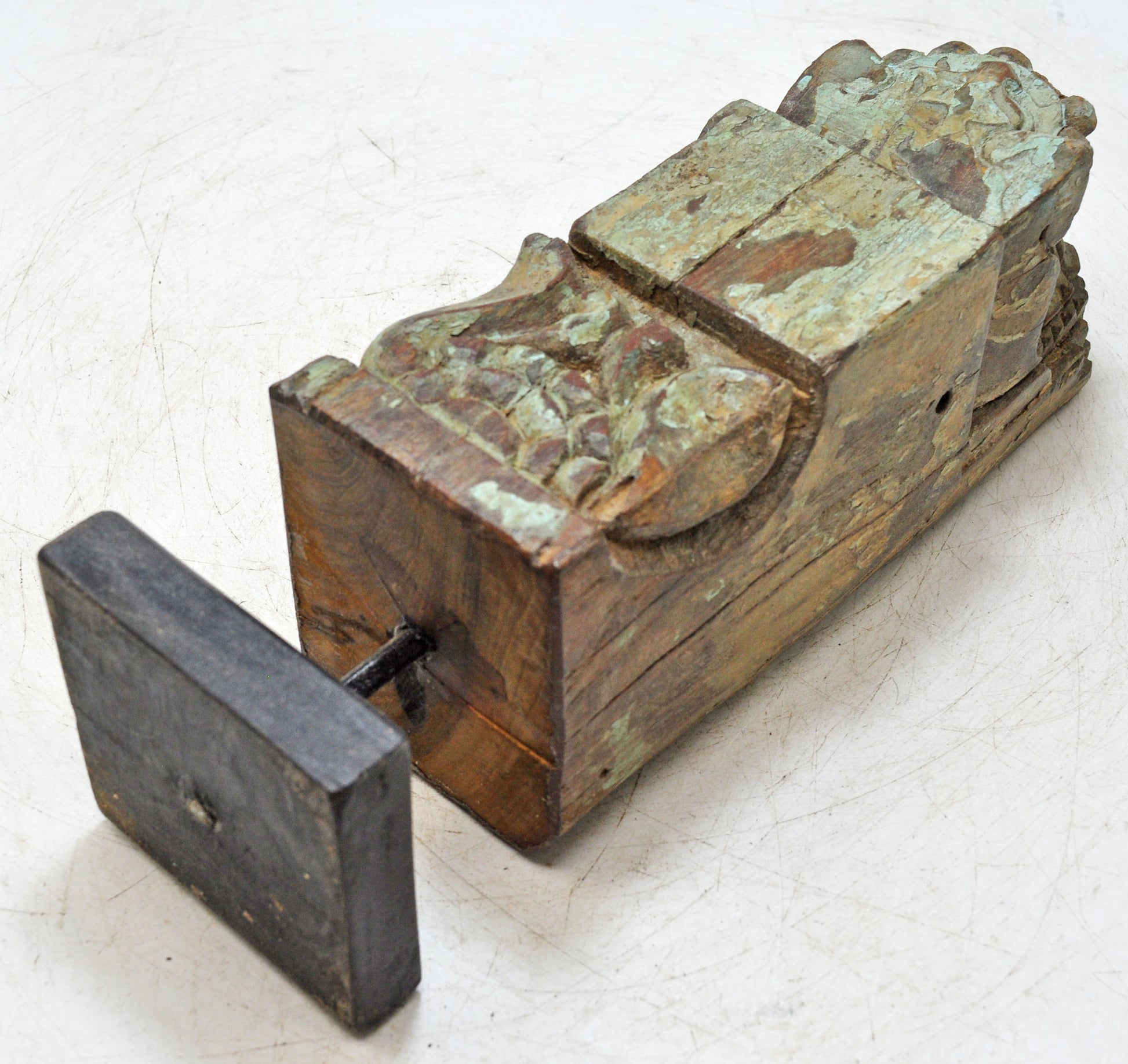 Antique Wooden Bracket Carving on Stand Original Old Hand Carved