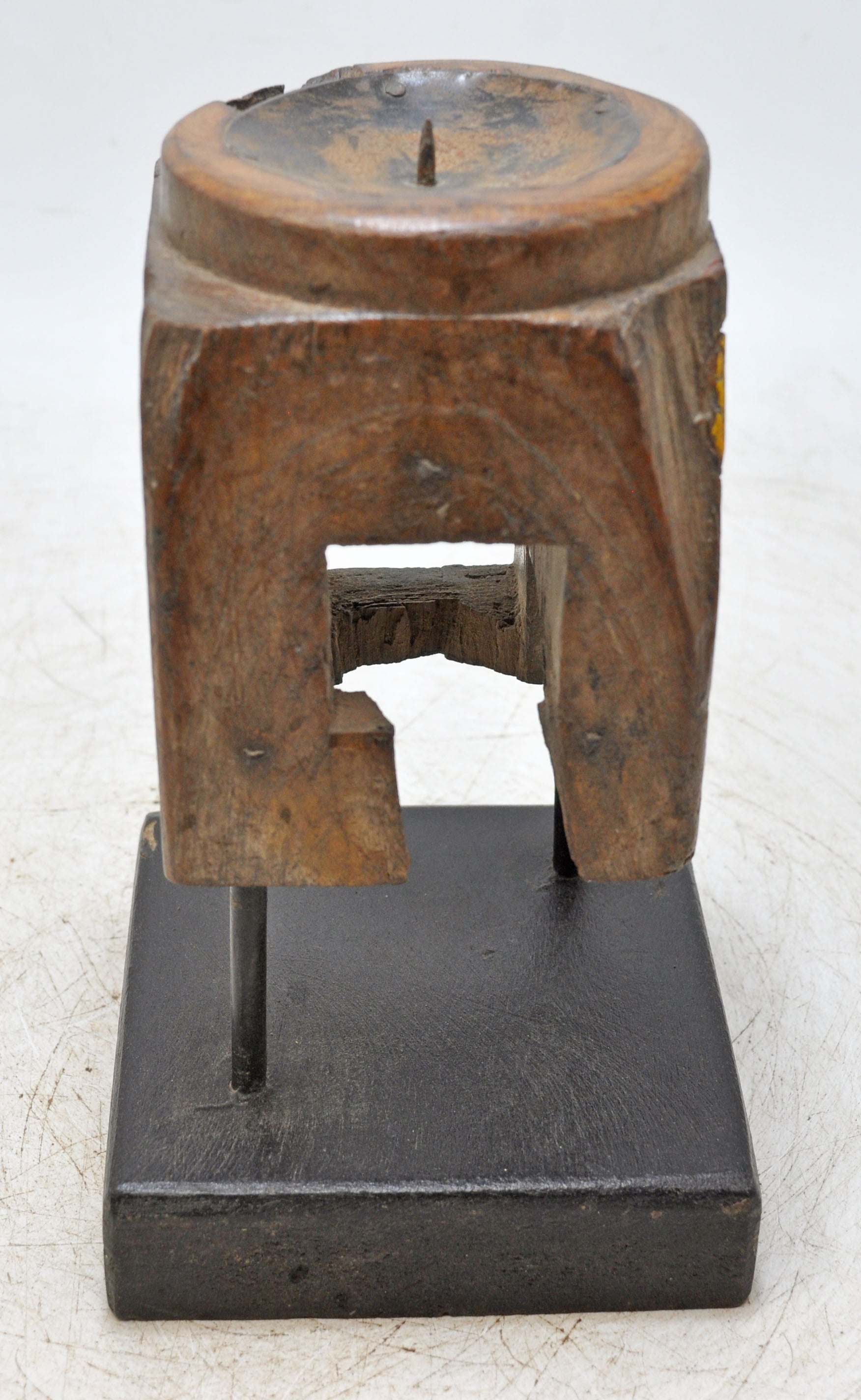 Antique Wooden Candle Holder Stand Original Old Hand Carved