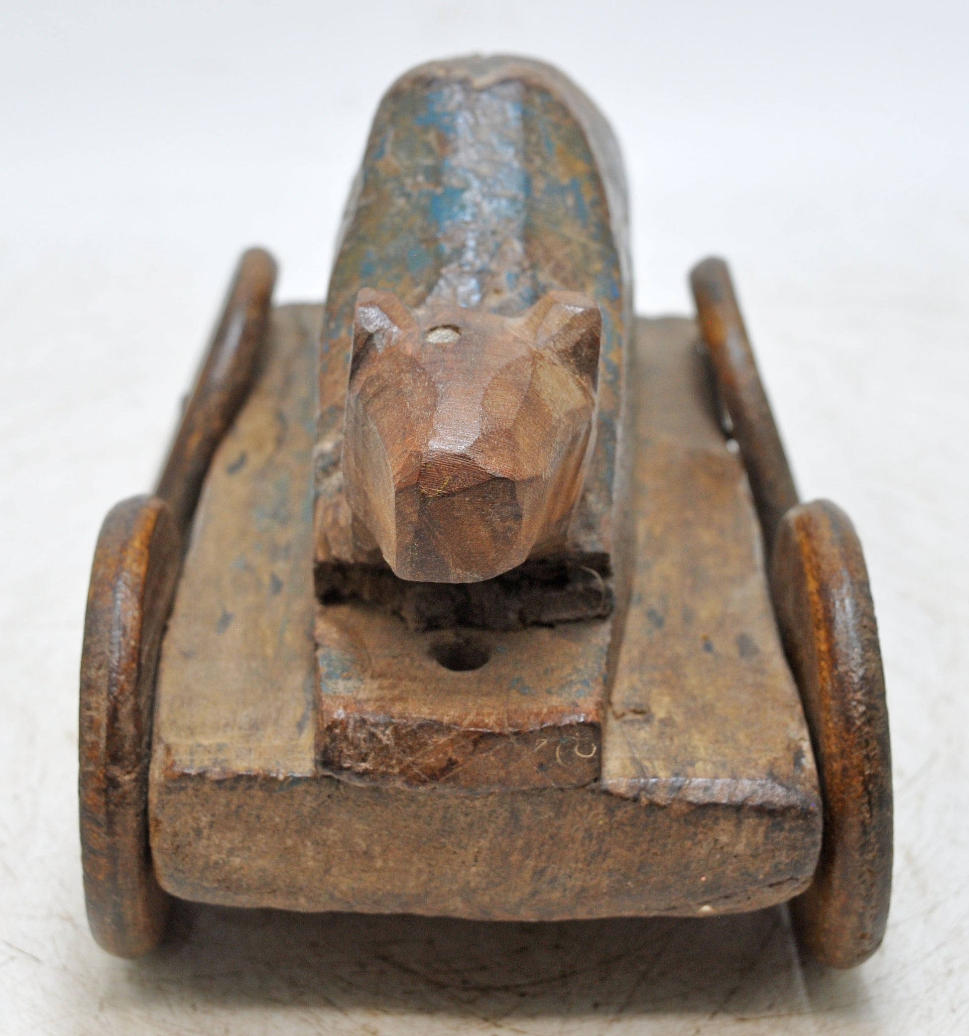 Antique Wooden Cow on Wheels Figurine Original Old Hand Carved