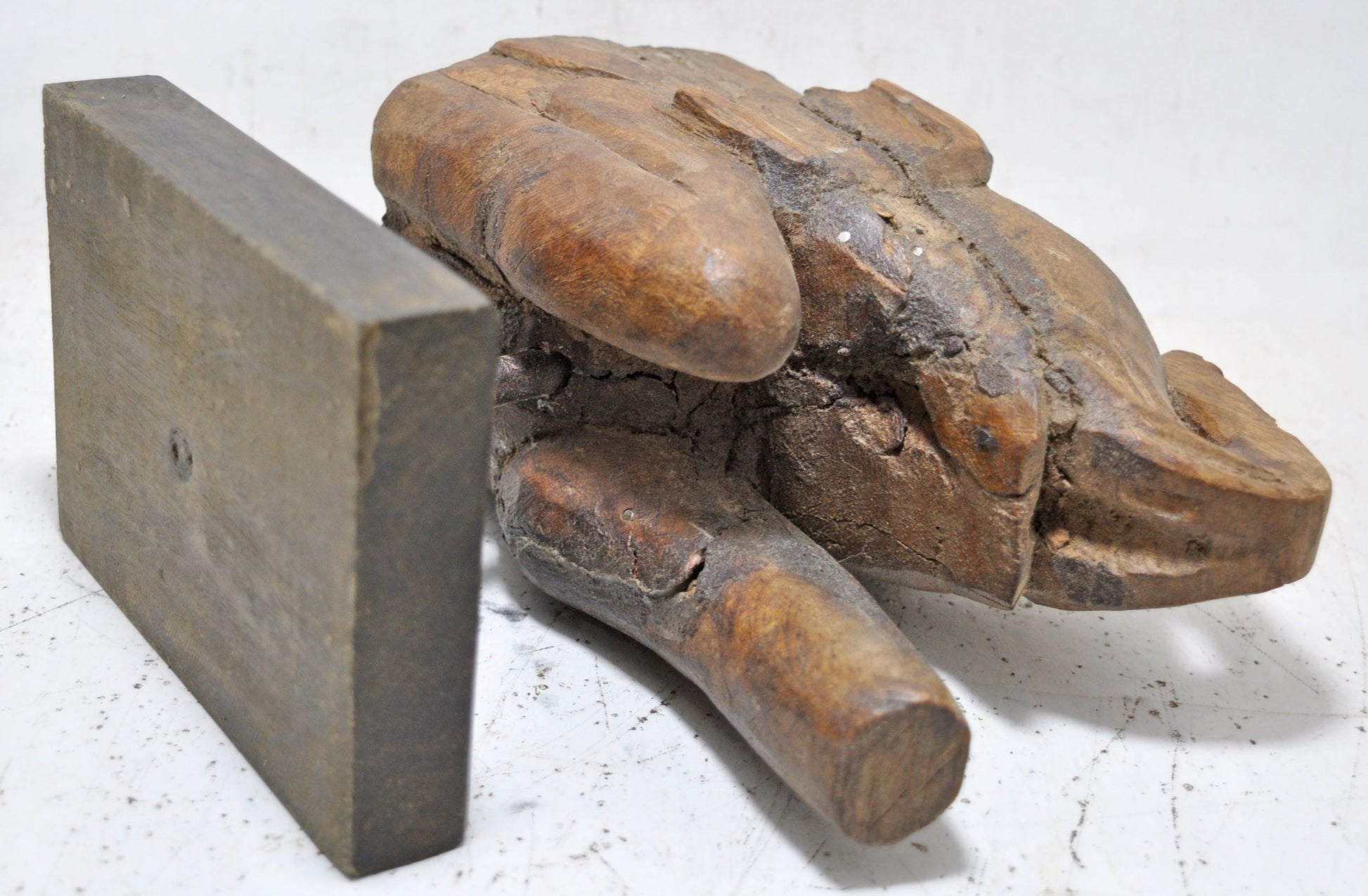 Antique Wooden Elephant Figurine on Stand Original Old Hand Carved