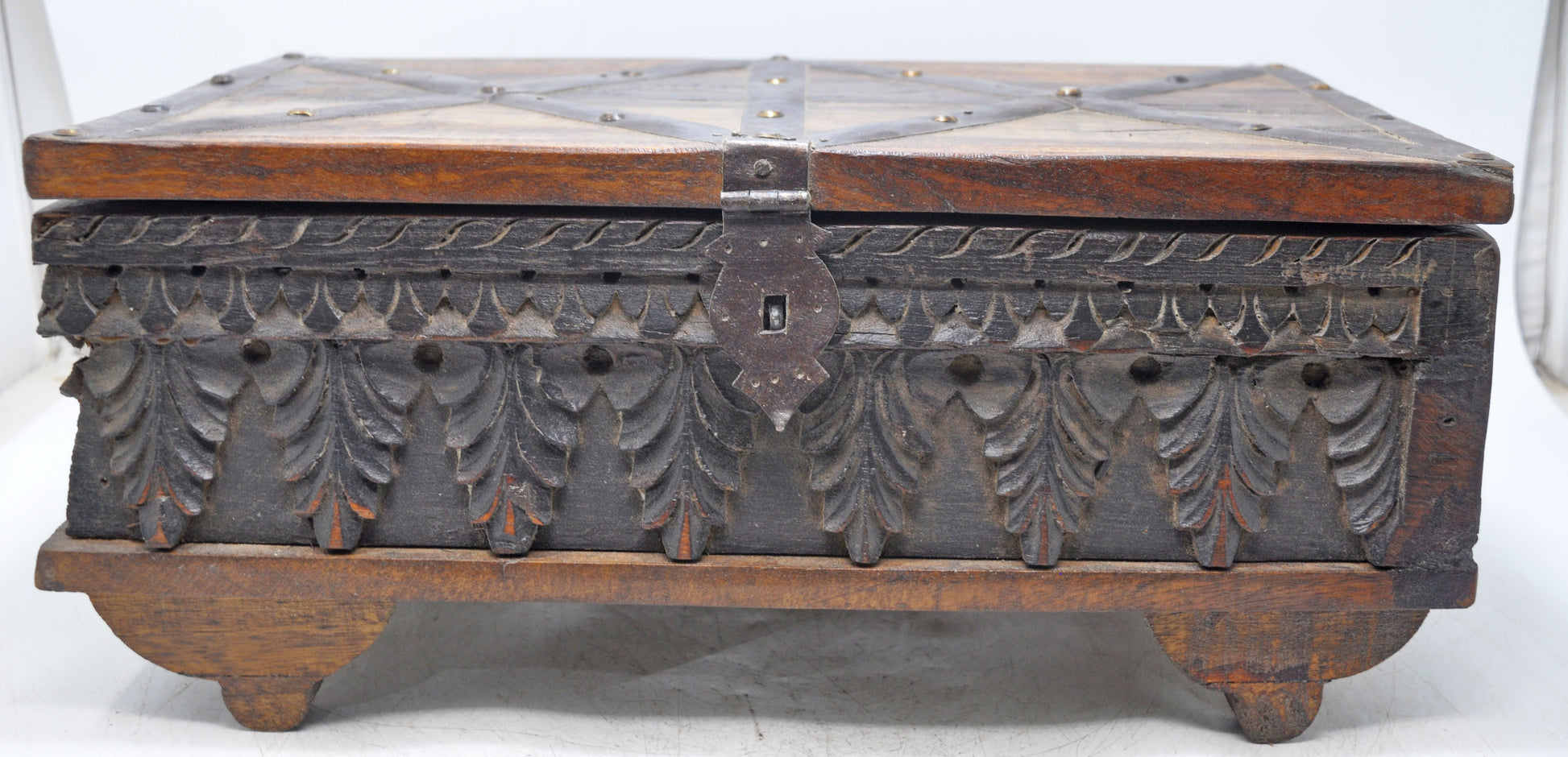 Antique Wooden Fine Carved Storage Treausre Chest Box Original Old