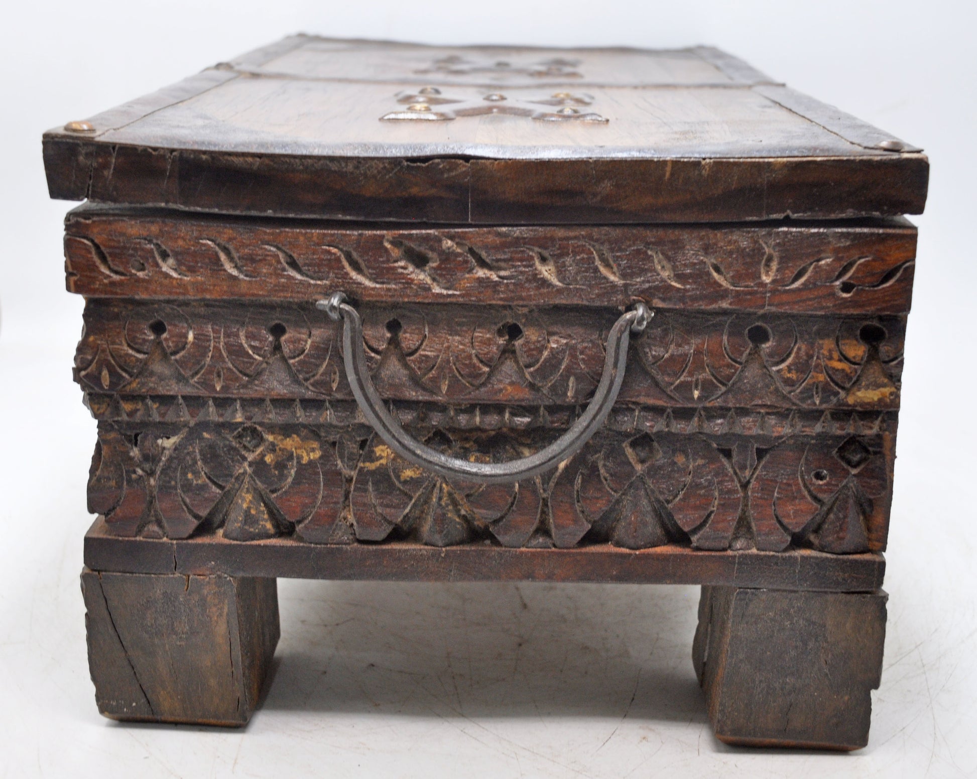 Antique Wooden Fine Carved Storage Treausre Chest Box Original Old