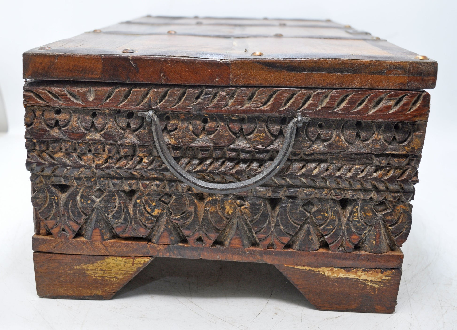 Antique Wooden Fine Carved Storage Treausre Chest Box Original Old