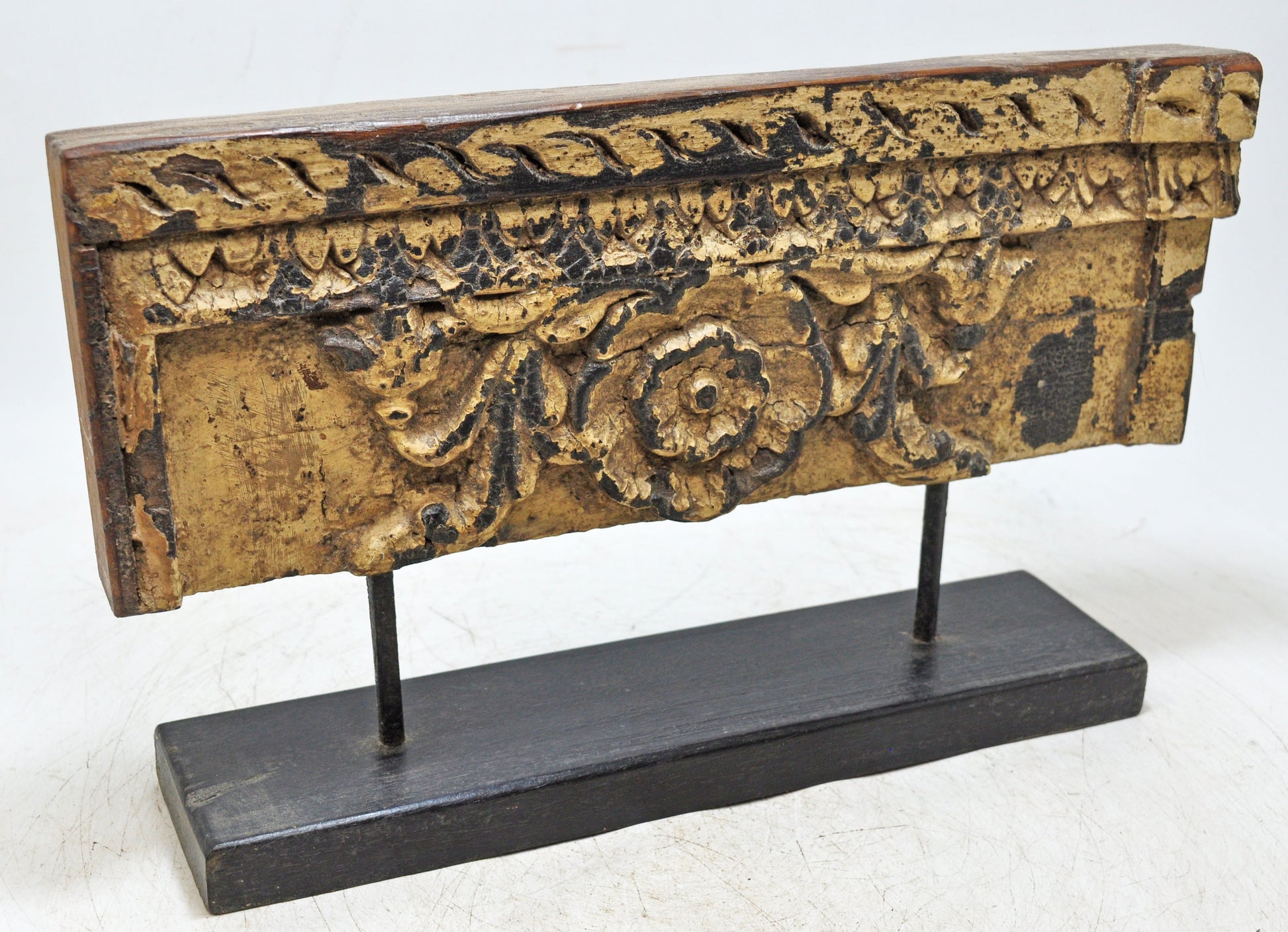 Antique Wooden Floral Carving Panel Plaque Original Old Hand Carved