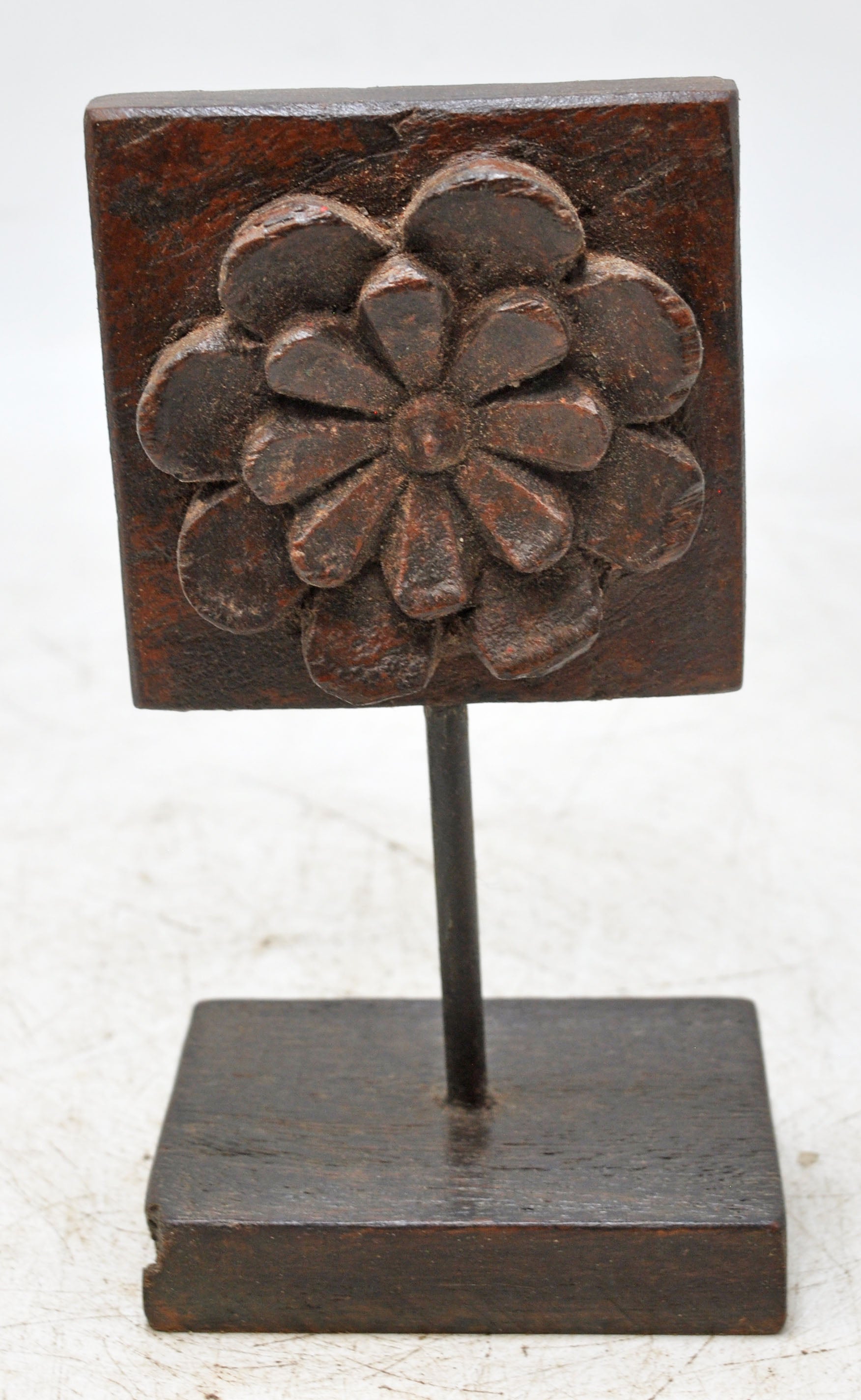 Antique Wooden Floral Carving Plaque on Stand Original Old Hand Carved