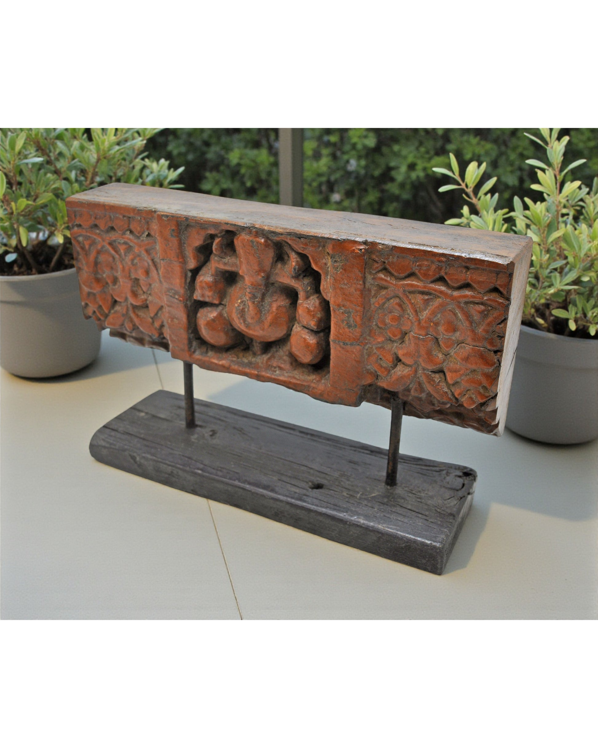 Antique Wooden God Ganesha Idol Carving Panel Plaque Original Old Fine Hand Carved