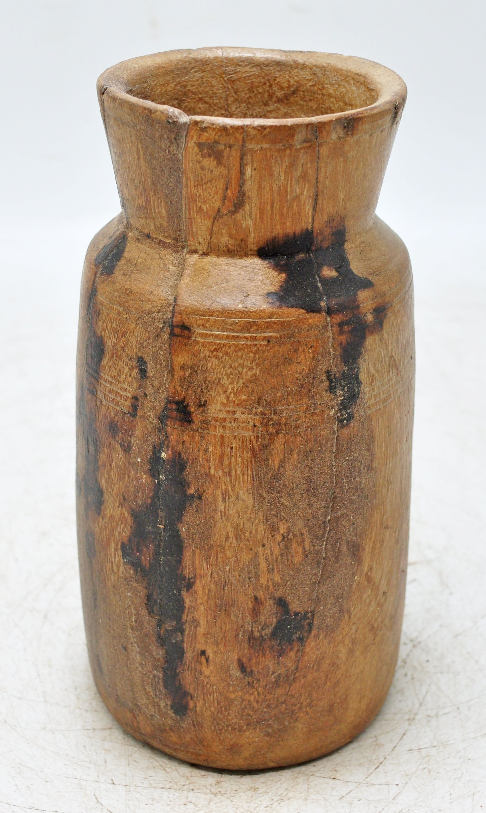 Antique Wooden Grain Measurement Pot Original Old Hand Carved