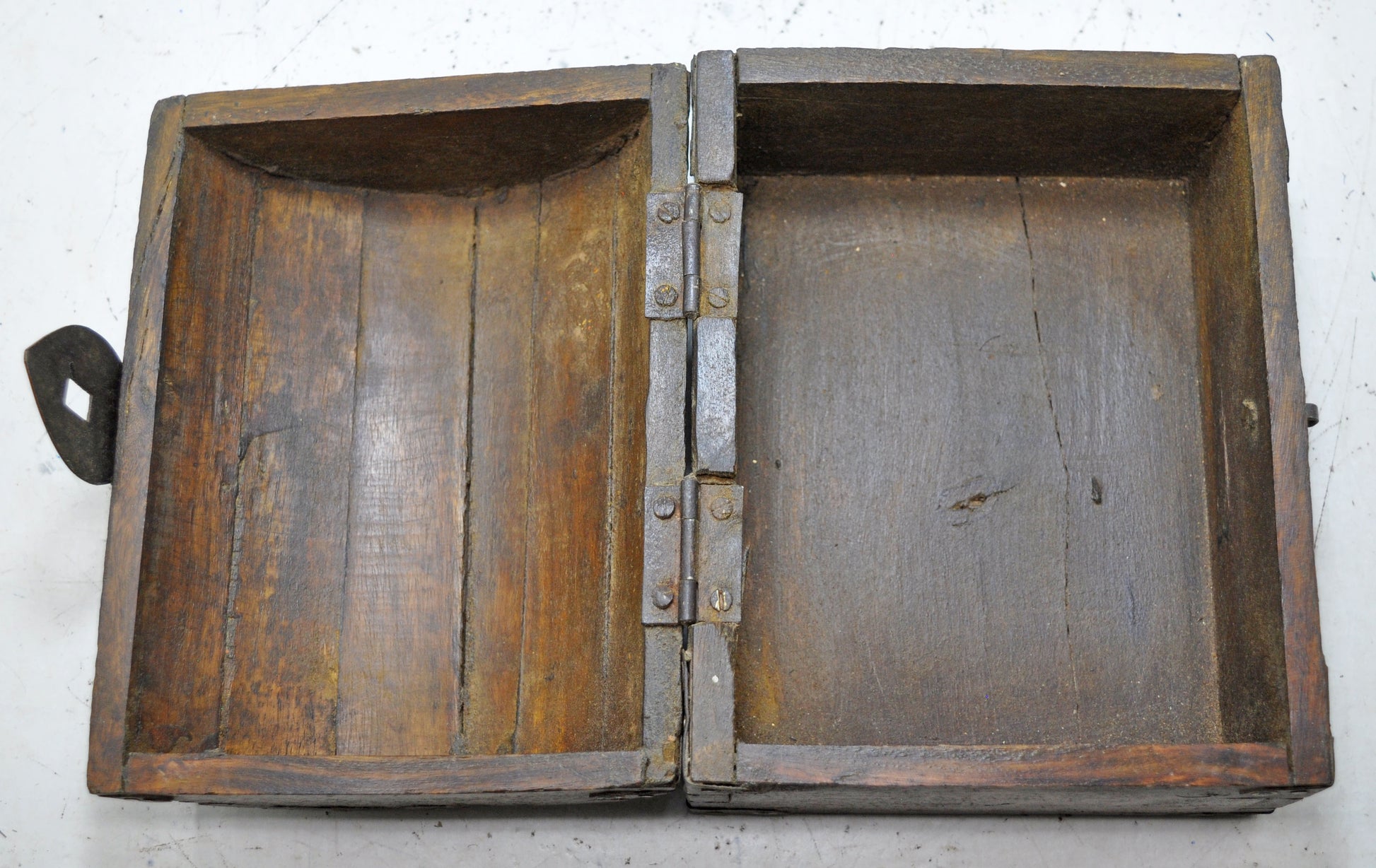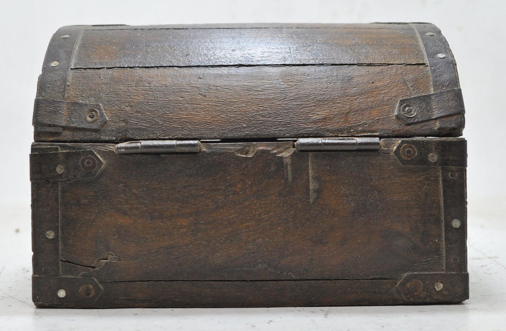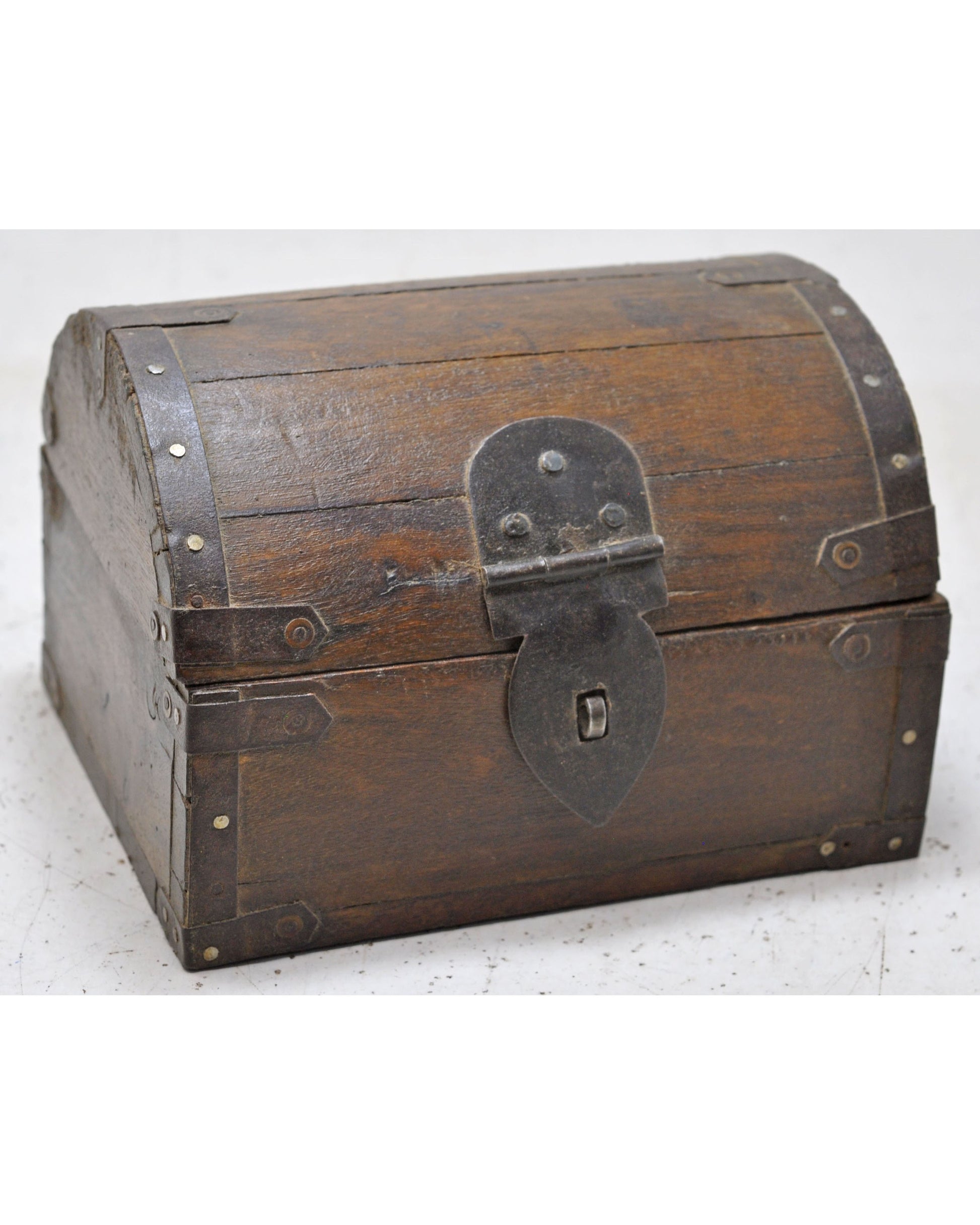 A nice looking old wooden storage box. Hand crafted with a half round top. Good condition and a rich patina. Origin India.