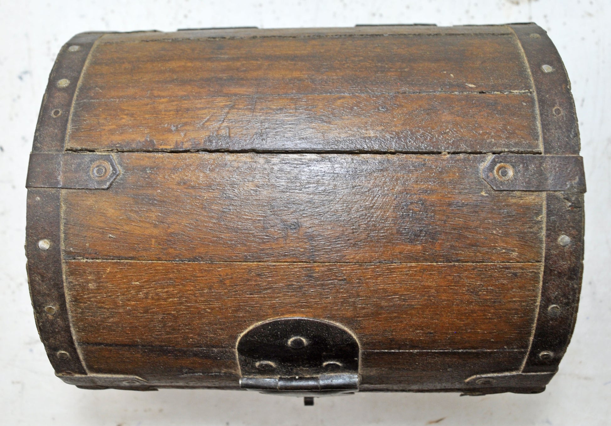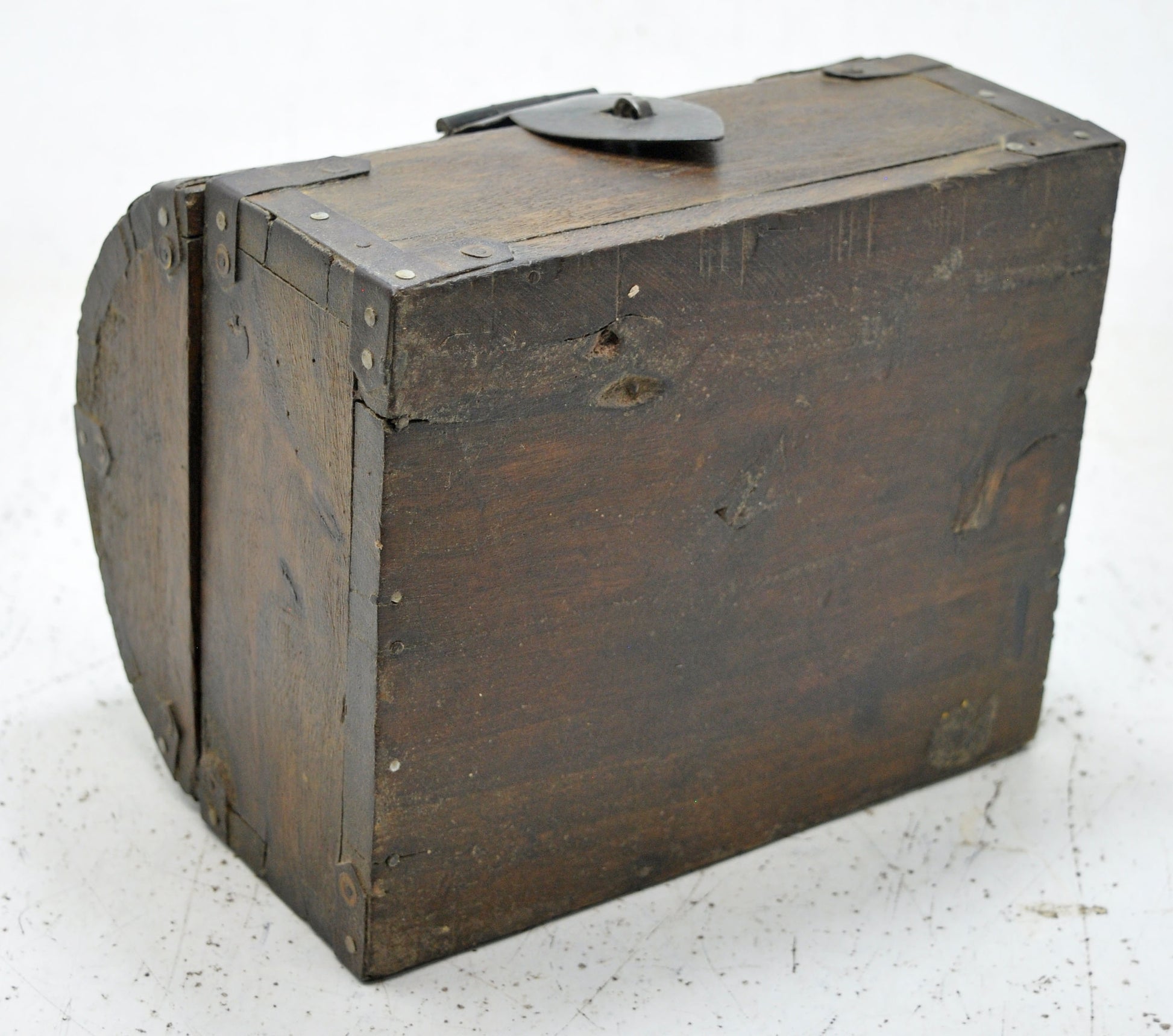 Antique Wooden Half Round Top Storage Box Original Old Hand Crafted