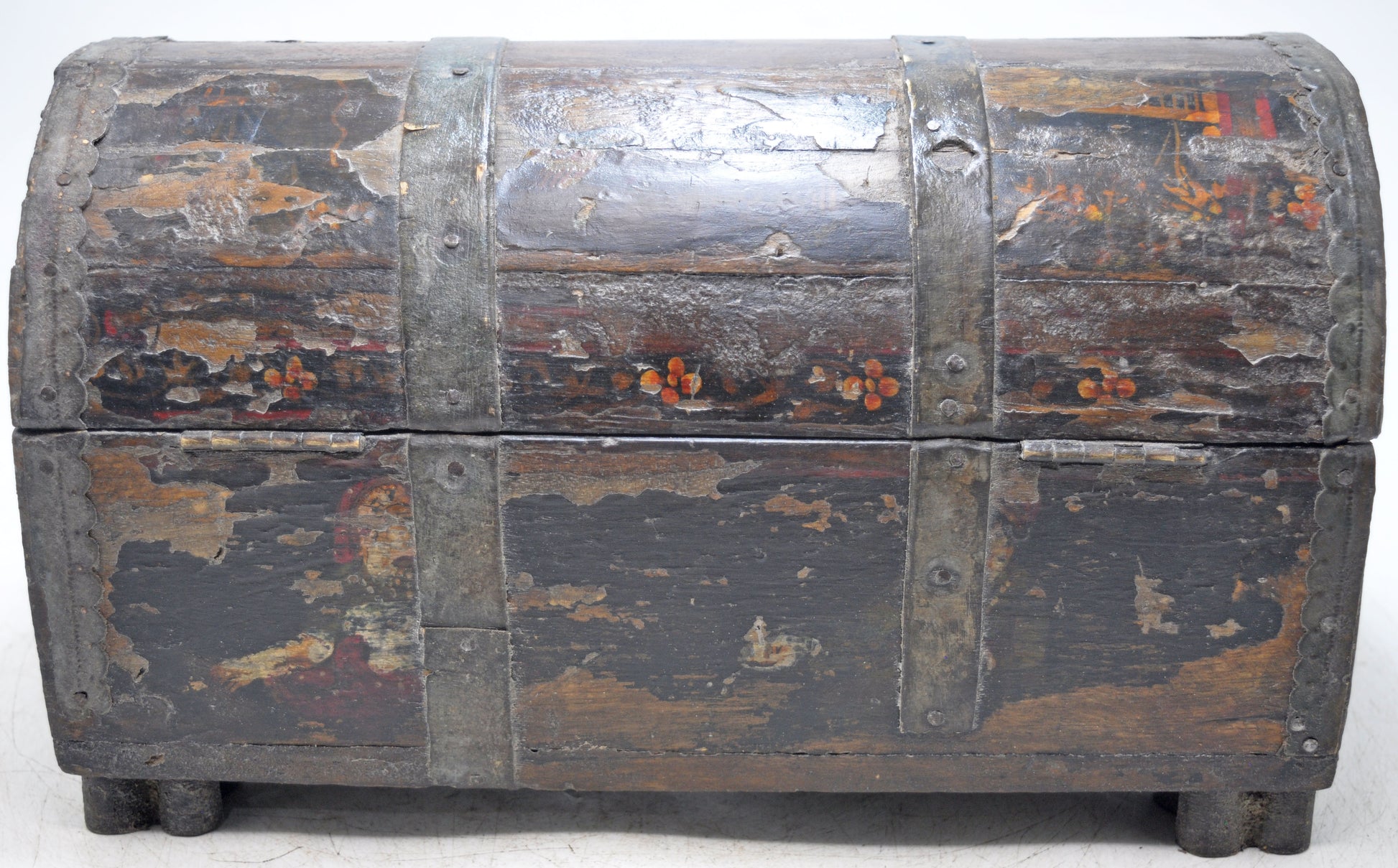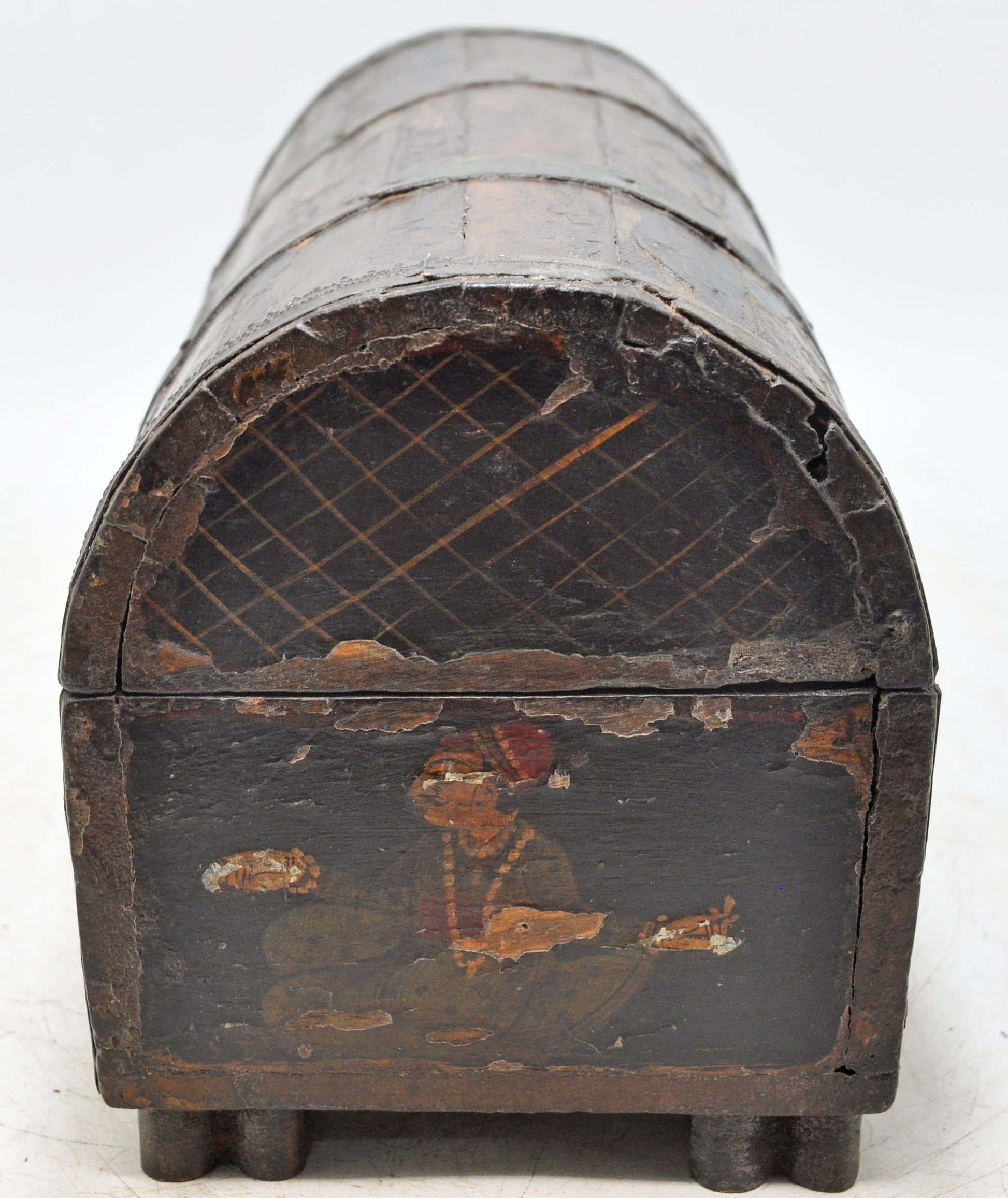 Antique Wooden Half Round Top Storage Box Original Old Hand Crafted Painted