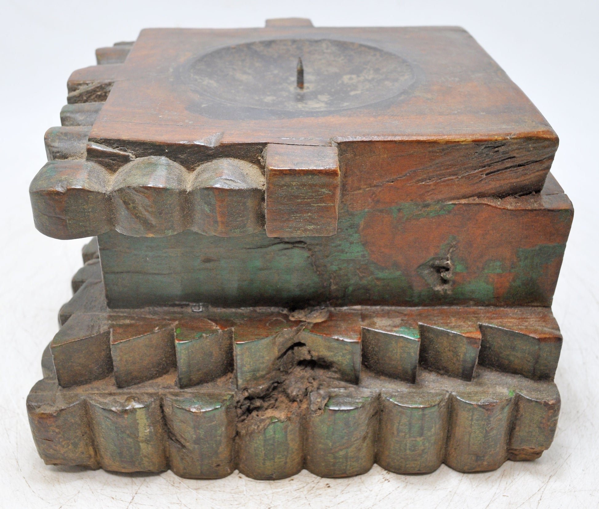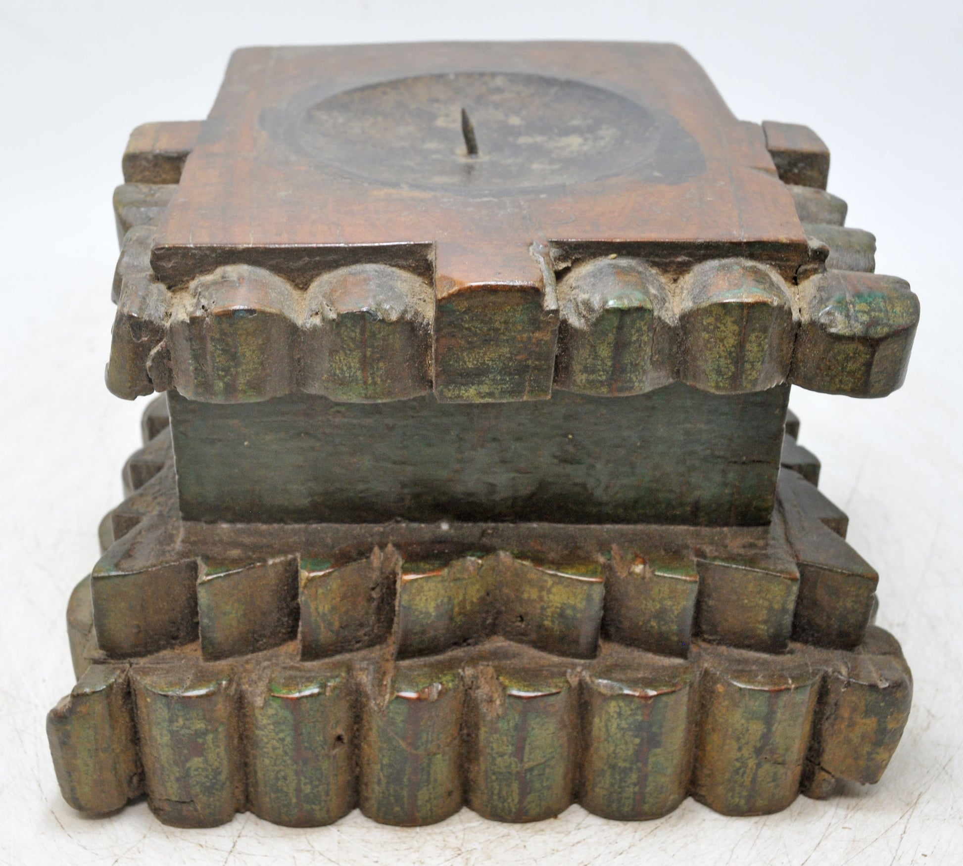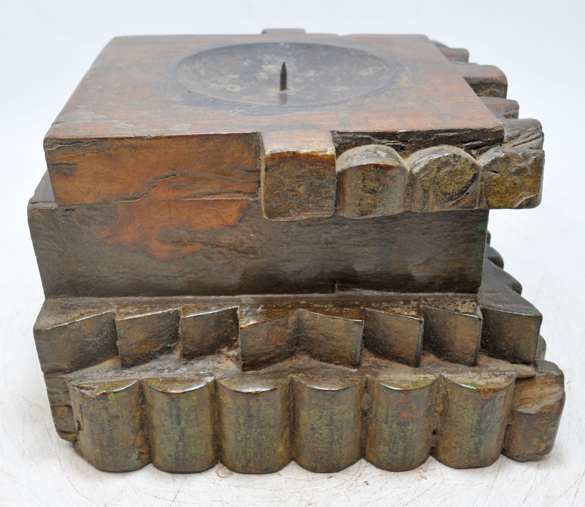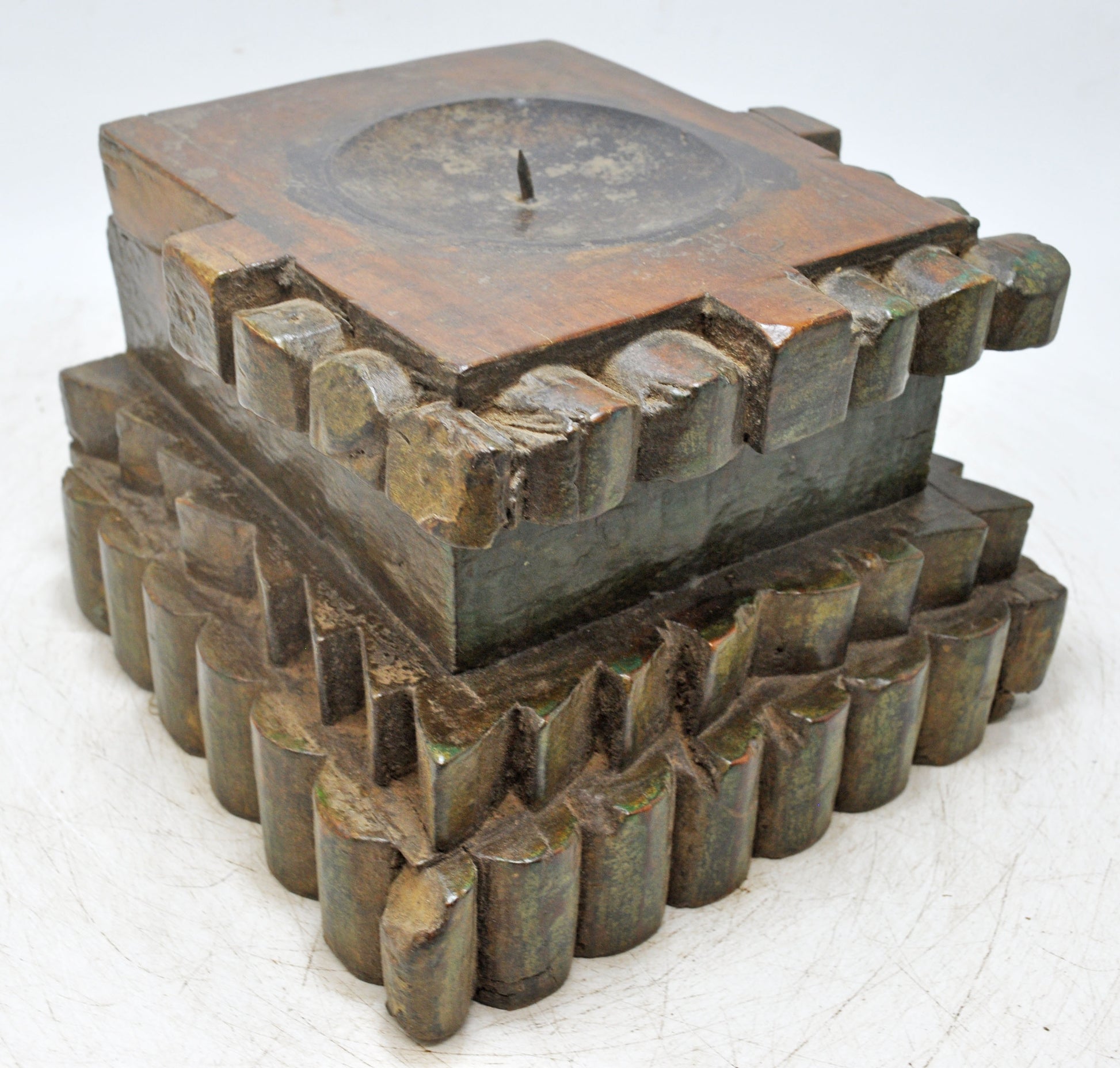 Antique Wooden Heavy Pillar Base Candle Holder Original Old Hand Carved