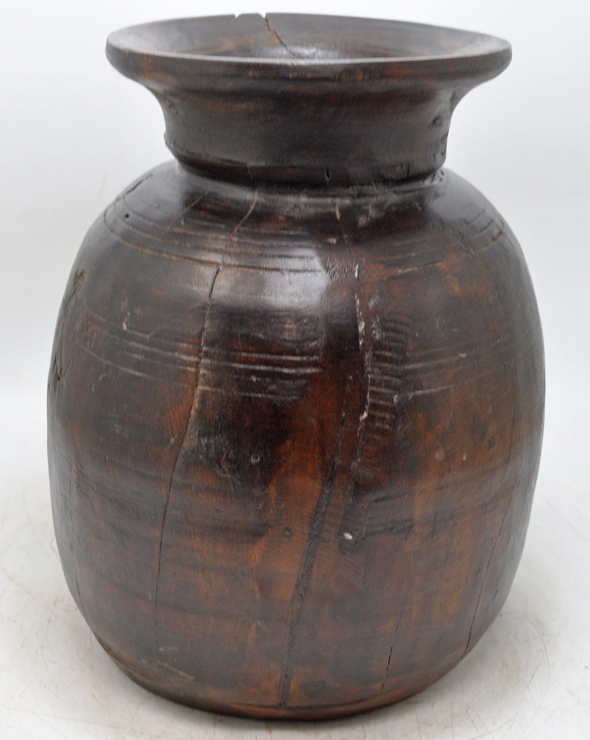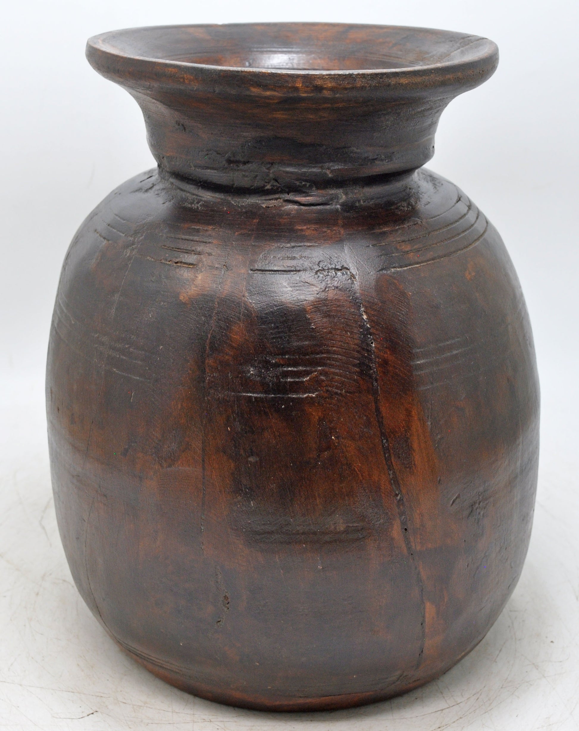 Antique Wooden Himalayan Water Pot Matka Original Old Hand Carved
