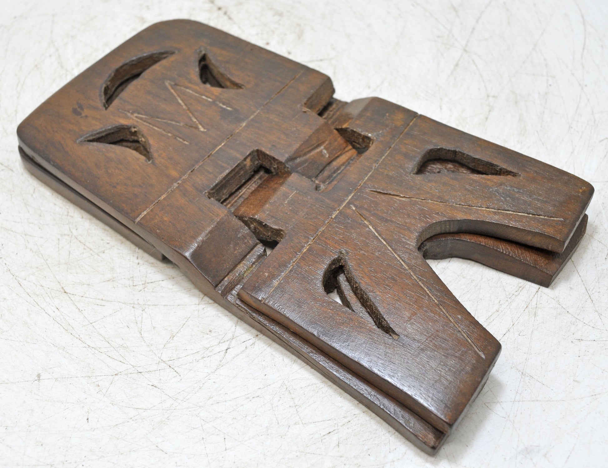 A classic hand-carved wooden book stand, originally intended for the safekeeping of sacred books in Indian homes. Its carefully shaped form, intricate carving, and aged patina showcase traditional craftsmanship at its finest. In excellent condition, this vintage piece offers both decorative beauty and a tangible connection to India’s spiritual and cultural heritage.