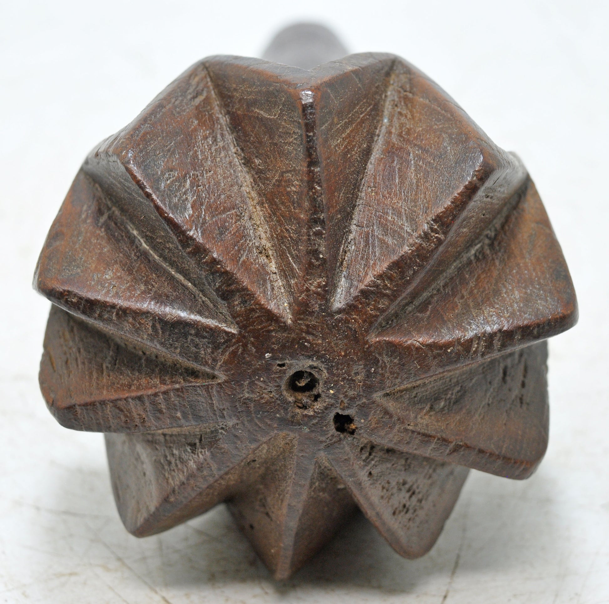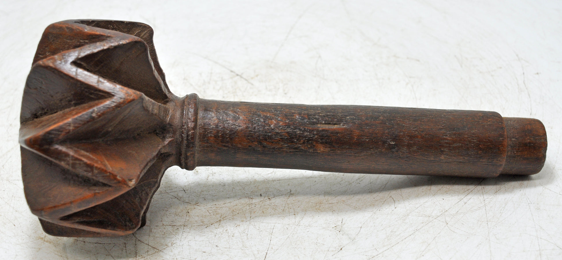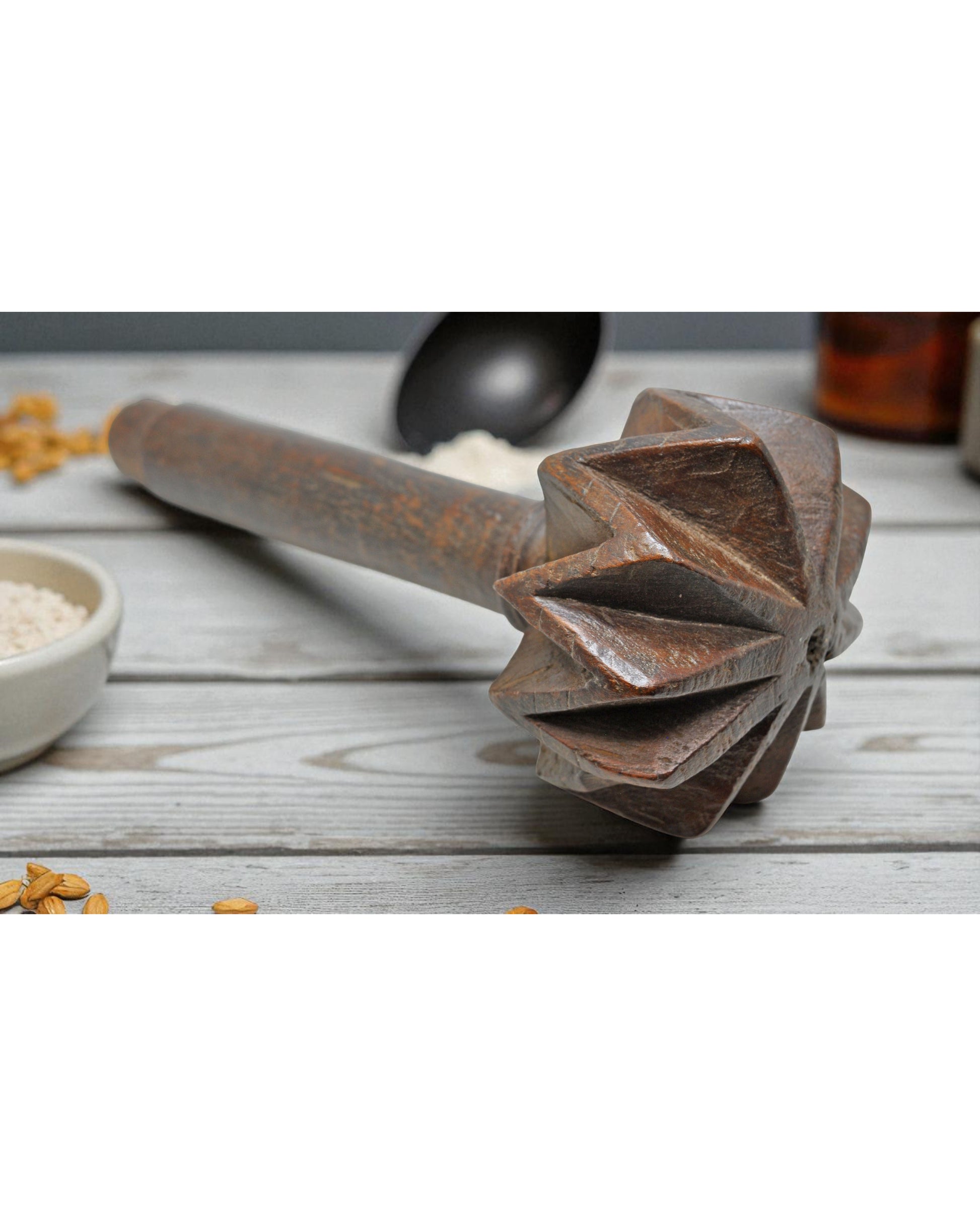 This unique old churning stick, crafted from solid wood, was originally used in India for butter-making. Handmade with care, it features a pleasing shape and reflects the simplicity of traditional tools. Its aged surface reveals a rich natural patina that tells the story of many years of use. Still in good condition, it is a meaningful item for collectors of antique household objects.