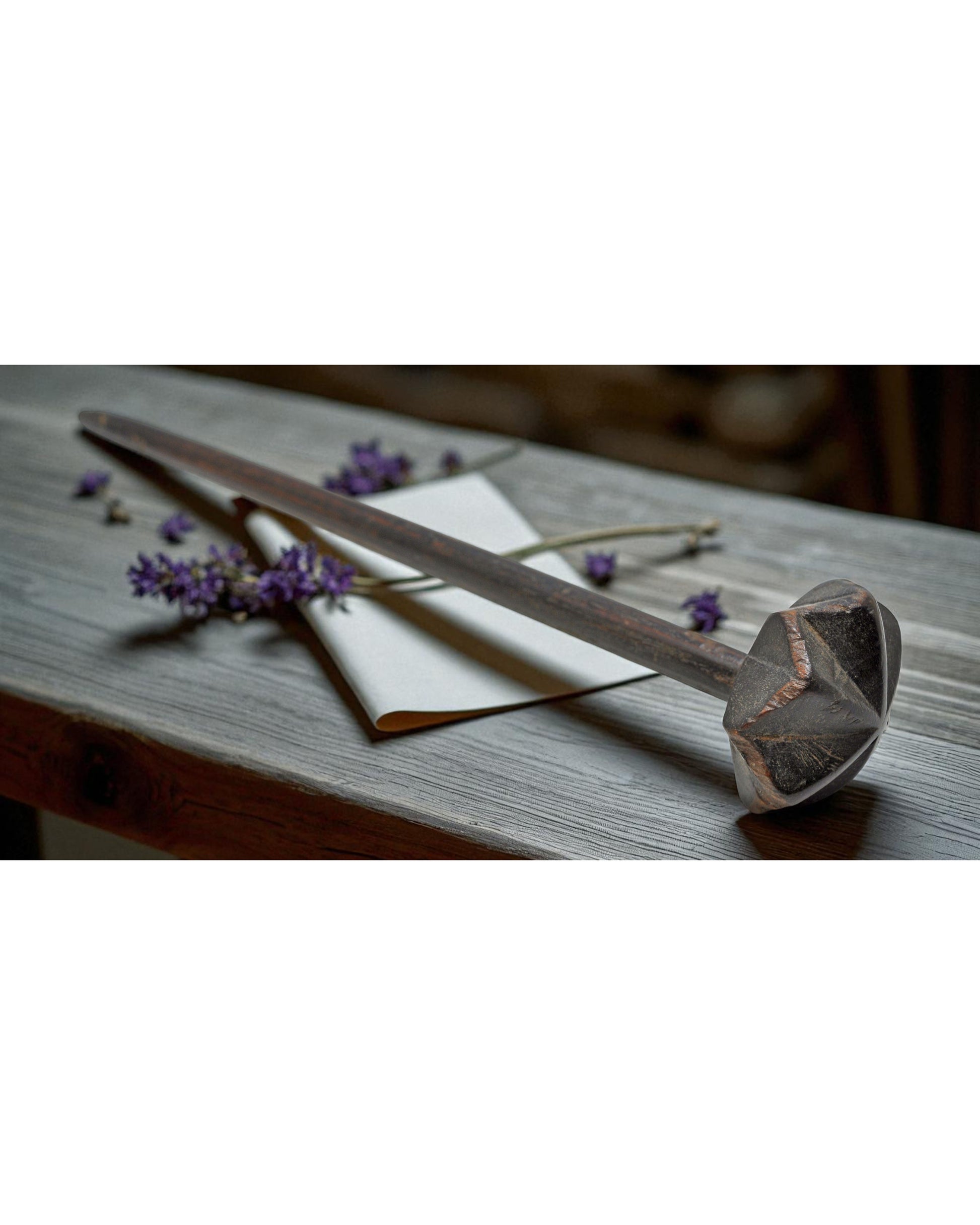 A vintage wooden mixing stick, carefully handcrafted and originally used in traditional kitchens. The stick has been shaped by hand into a smooth, functional design, highlighting artisanal skill. It remains in good condition and features a warm, natural patina that speaks to its age. Originating from India, this piece is perfect for collectors, vintage décor enthusiasts, or as a distinctive kitchen artifact.
