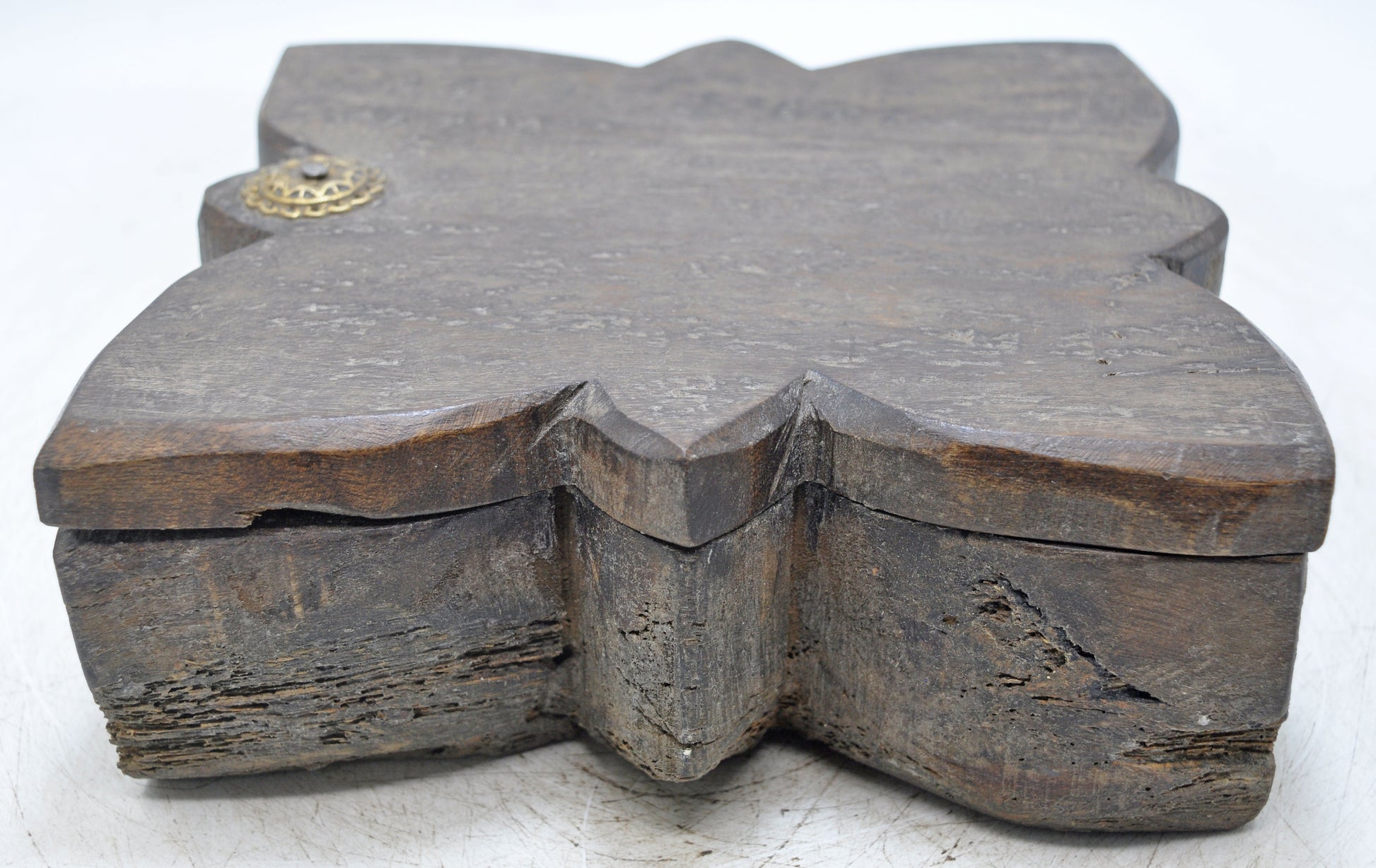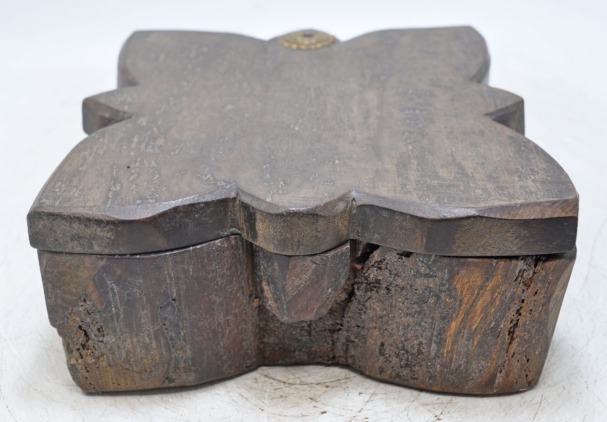 A beautifully hand-carved wooden box, once used for storing spices in old Indian kitchens. The intricate detailing on its surface reflects the care and skill of traditional artisans. Its rich, aged patina adds depth and character, enhancing its antique charm. Remaining in good condition, this elegant piece originates from India and embodies the warmth of vintage craftsmanship.