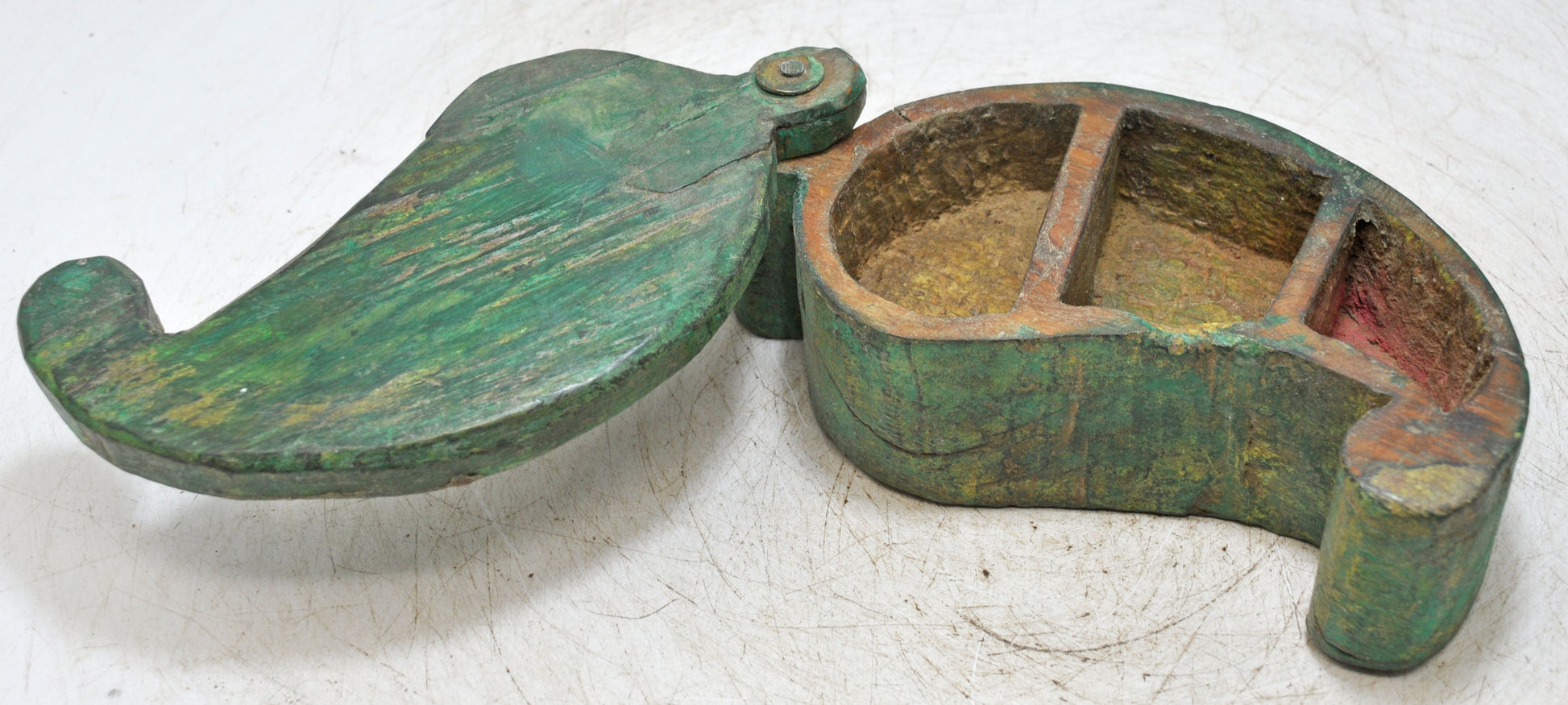 Antique Wooden Kitchenware Spice Box Original Old Hand Carved Rustic Painted