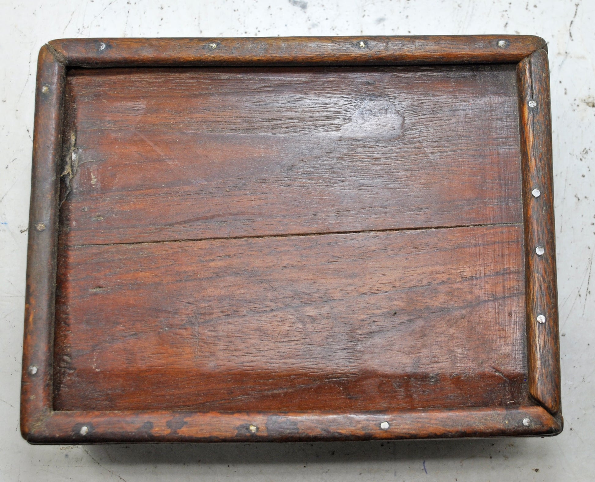 A nice looking old wooden box originally used in old Indian kitchens for keeping spices. Hand crafted in a nice shape, with 4 compartments inside. Good condition and a rich patina. Origin India.
