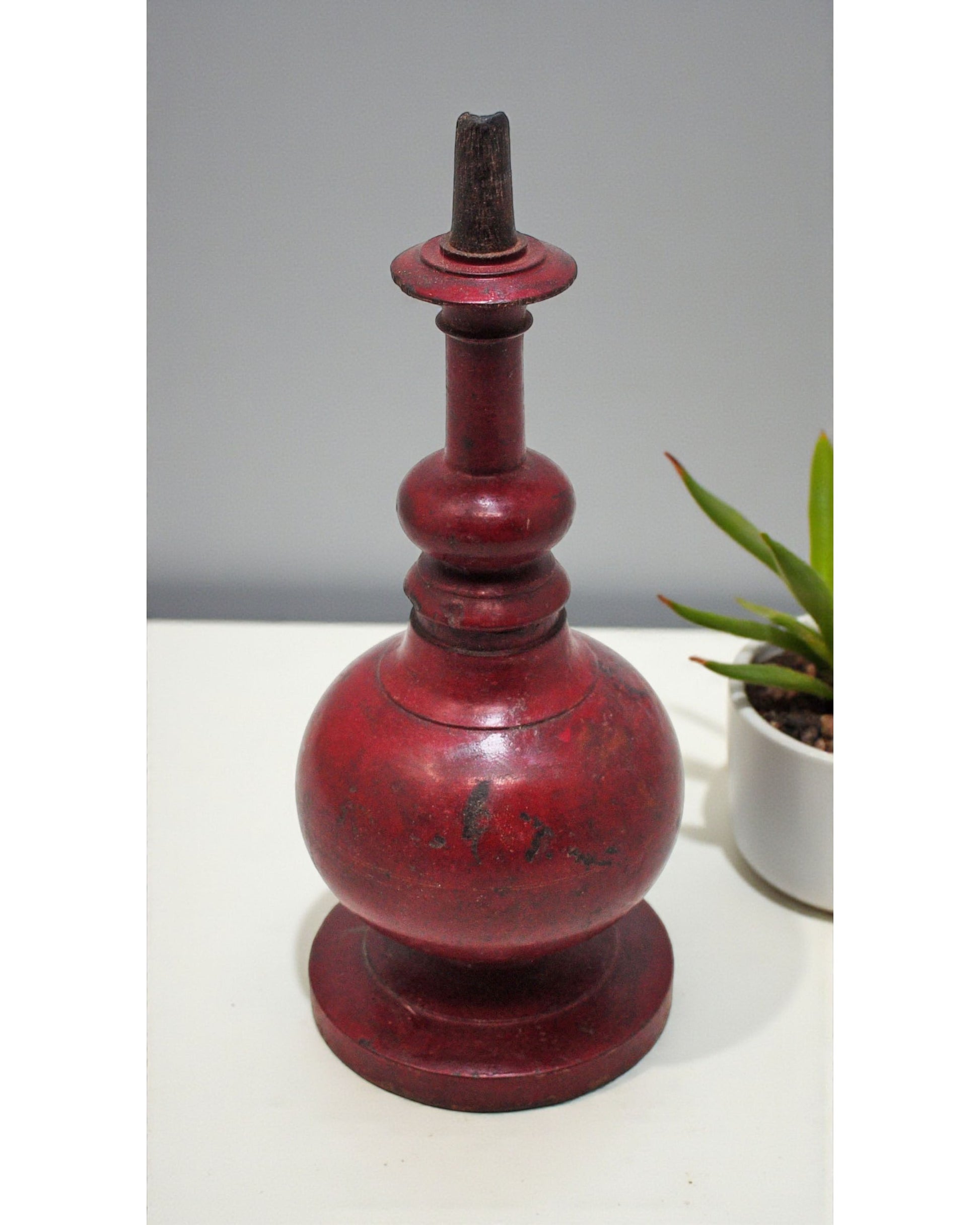 This vintage wooden kum kum container, originally used during sacred tika rituals, was formed entirely by hand and finished with lacquer painting. The carving reflects a simple yet elegant style that echoes the spiritual traditions associated with ceremonial practices. A rich patina now enhances the wood, adding depth and authenticity to the piece. Still well preserved, it offers cultural significance and decorative value. A meaningful artifact from India.