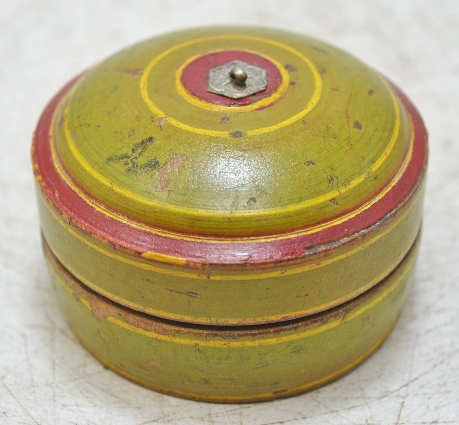 Antique Wooden Lacquer Painted Kum Kum Powder Tika Box Original Old