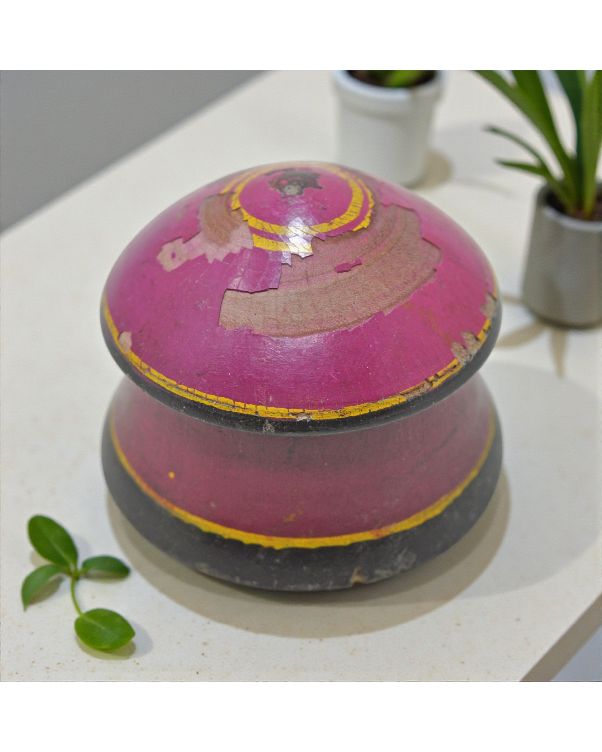 Antique Wooden Lacquer Painted Kum Kum Powder Tika Box Original Old