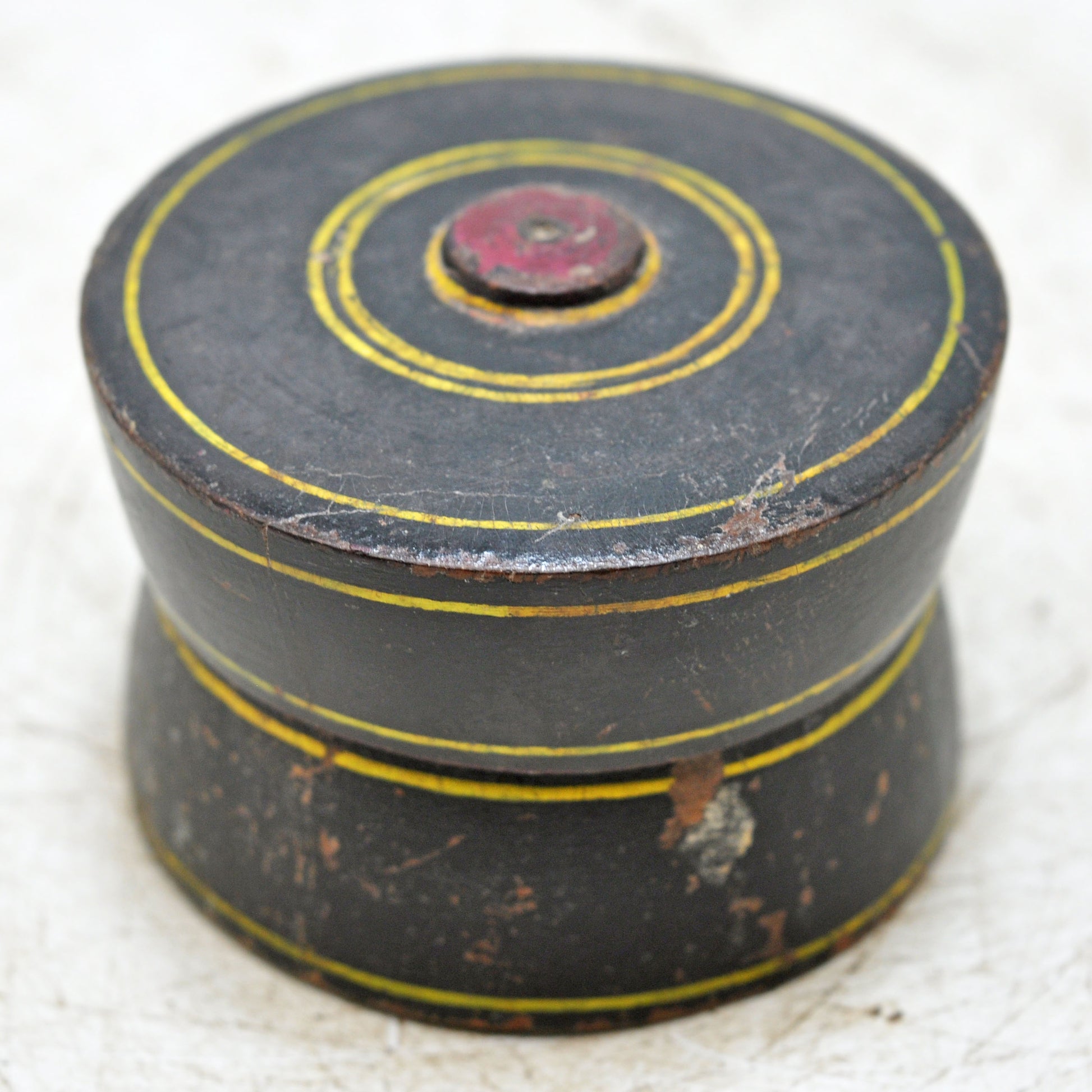 Antique Wooden Lacquer Painted Kum Kum Powder Tika Box Original Old