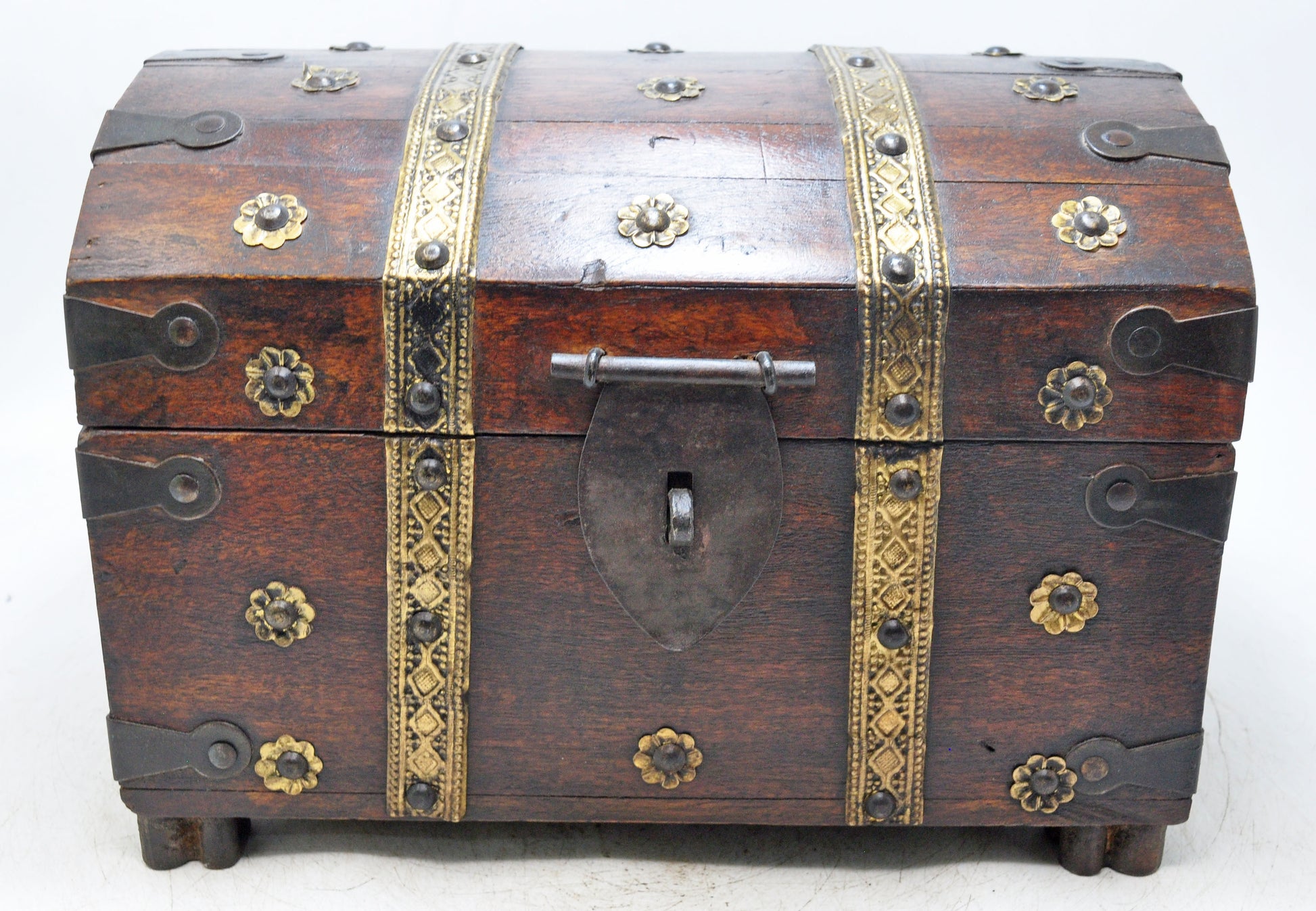 Antique Wooden Large Storage Chest Box Original Old Brass Fitted
