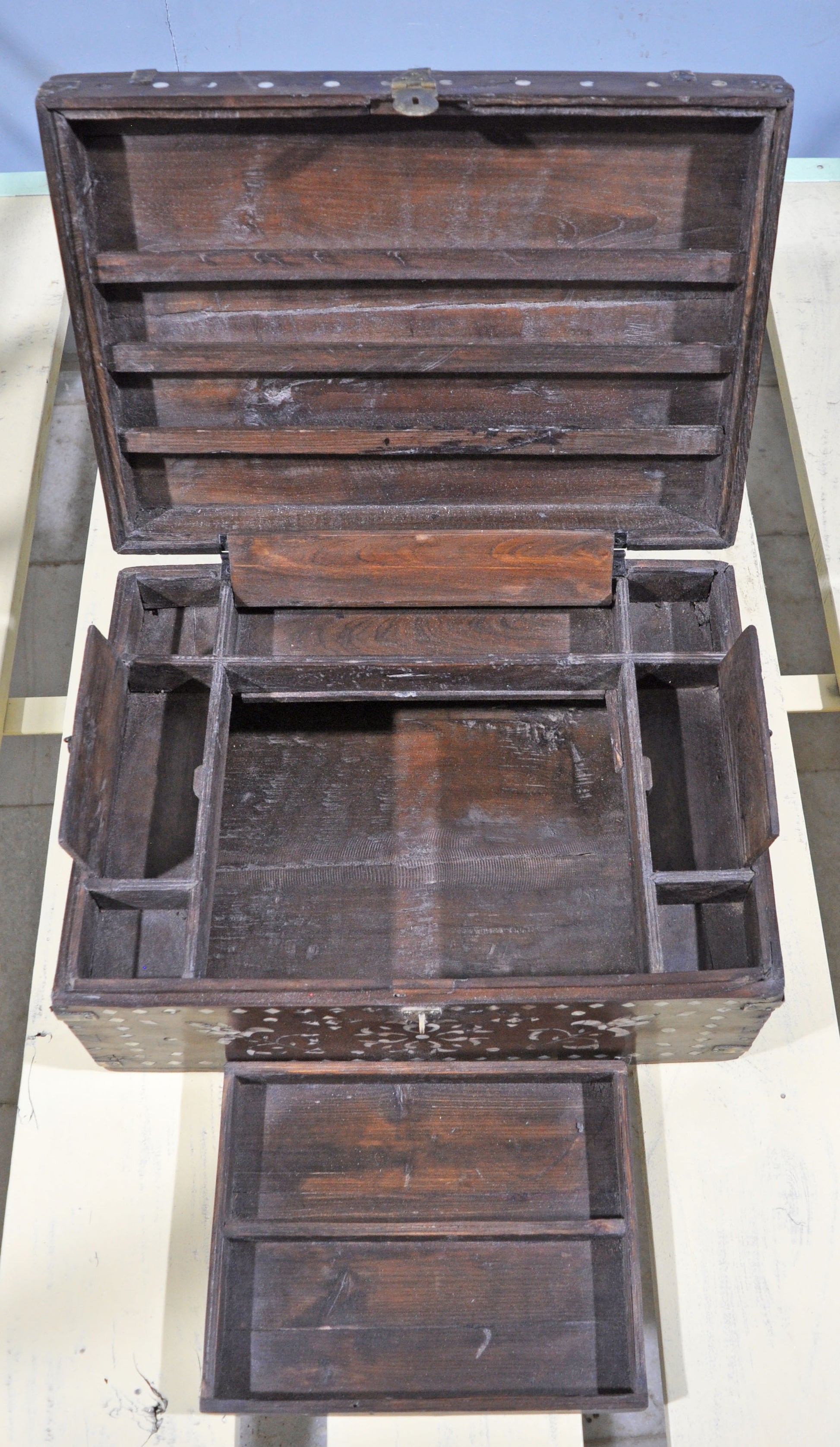 Antique Wooden Large Storage Chest Box Original Old Mother of Pearl Inlay