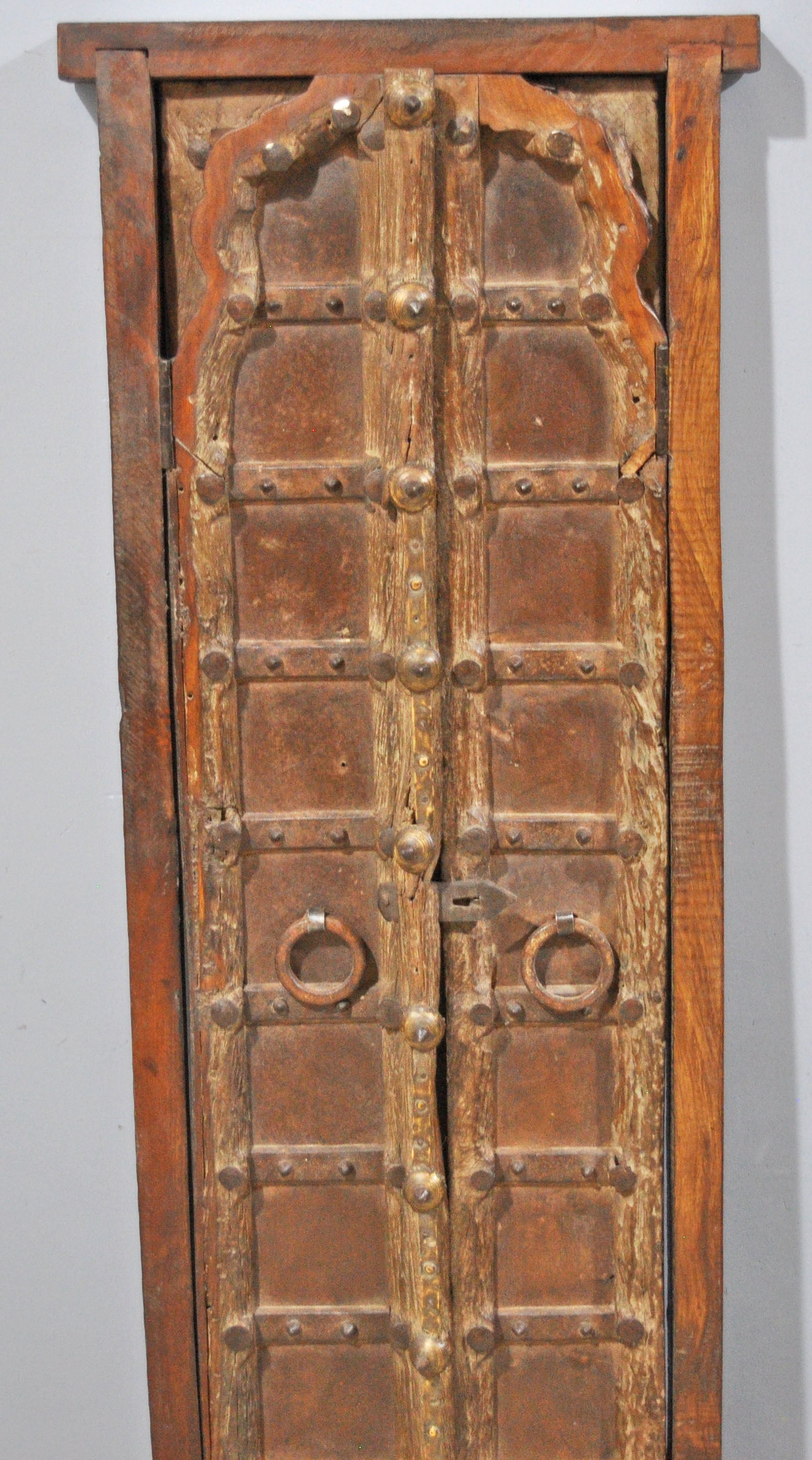 This striking vintage wooden window panel frame exudes historical charm, having been salvaged from old Indian homes. Meticulously hand-crafted, it features intricate carvings, authentic metal fittings, and original hardware, reflecting exceptional artistry. The frame remains in good condition, its surface adorned with a warm, rich patina that speaks of age and heritage. A remarkable collectible, it captures the elegance of traditional Indian architecture.