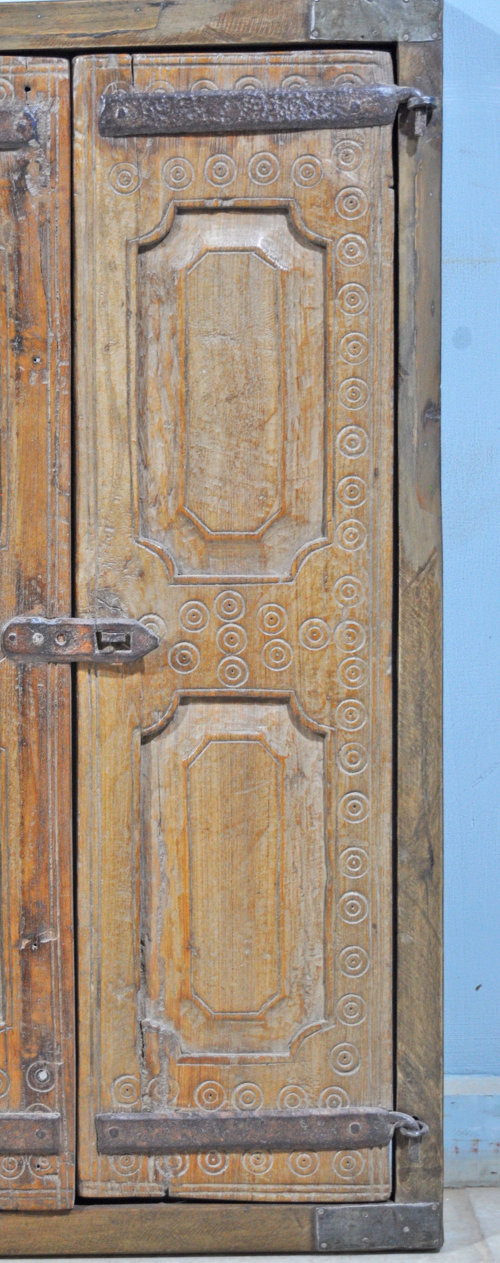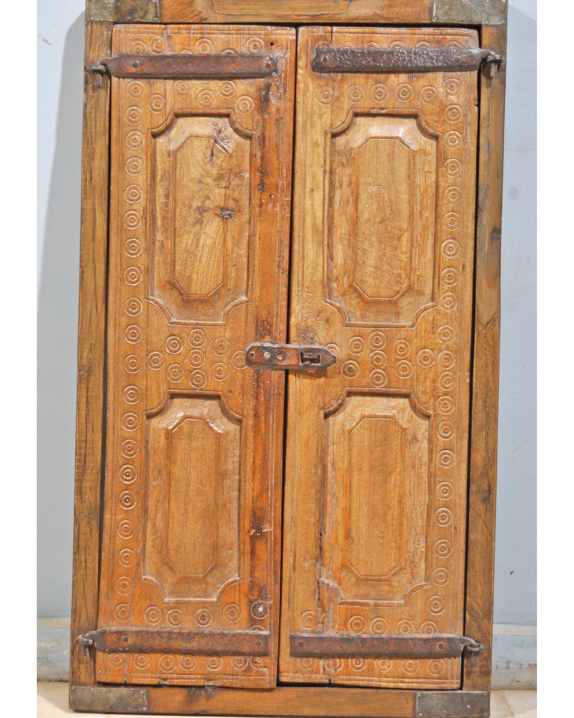 This is a beautiful, old wooden large size tall window panel with frame. It is hand crafted in a nice shape. It has fine carving and metal fitting work on the window. The condition of this window is good, and it has a rich patina. The window was made in India.
