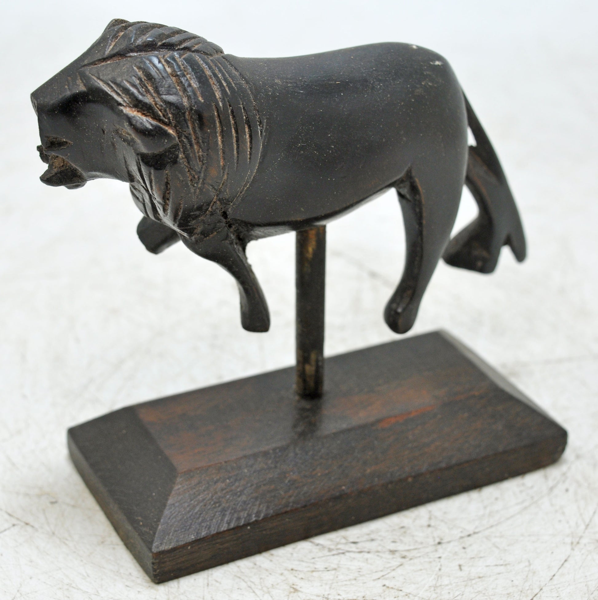 Antique Wooden Lion Figurine Original Old Hand Carved on Stand