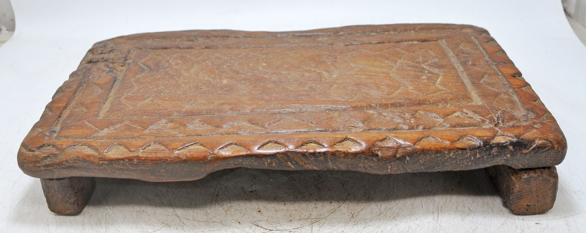 Antique Wooden Low Floor Sitting Bajot Stool Original Old Hand Carved