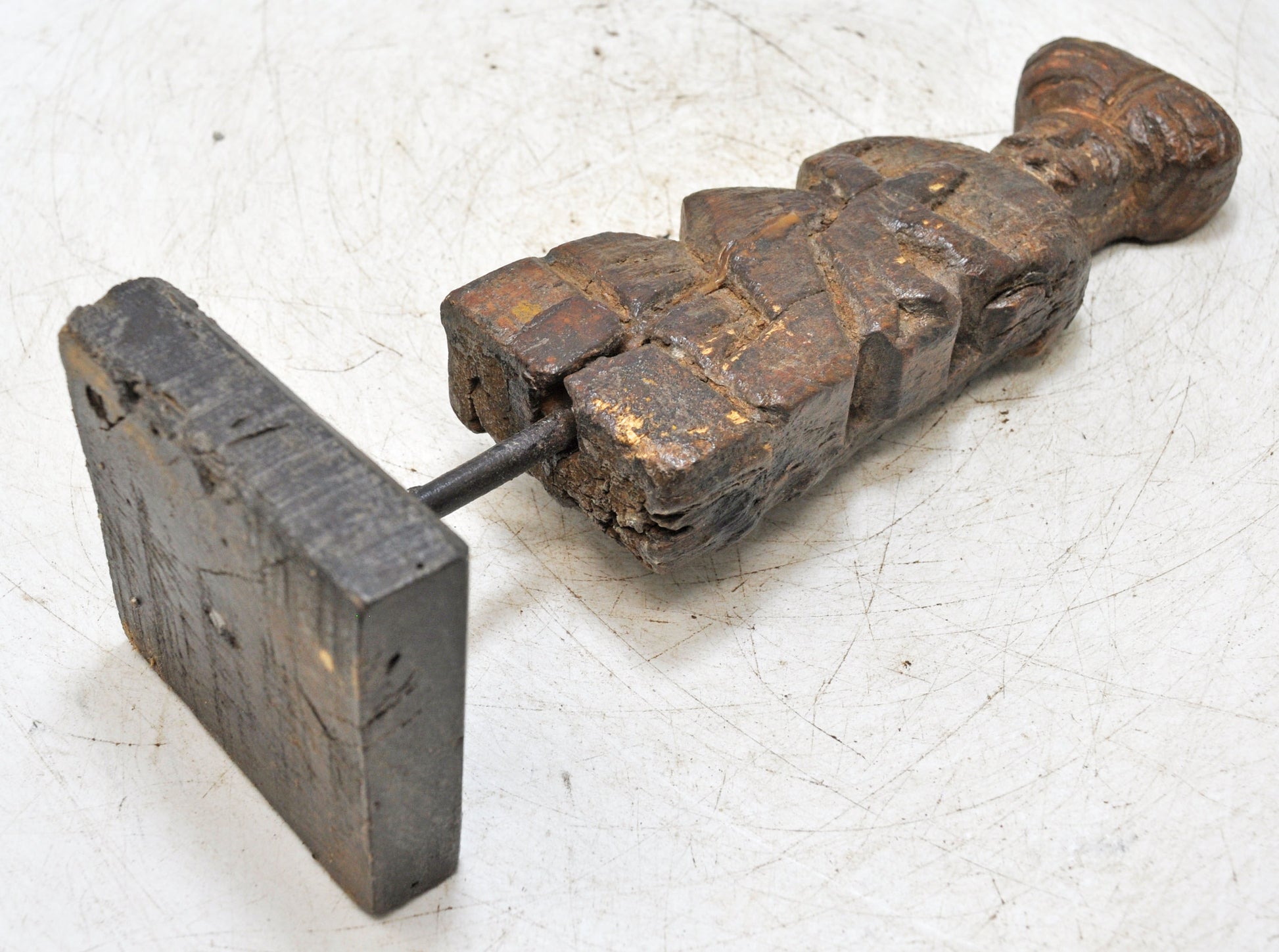 Beautifully hand-carved wooden man, formed into a poised and realistic stance with fine detailing and smooth finish, featuring a deep, warm patina that emphasizes its vintage authenticity, preserved in very good condition, from India, this collectible item celebrates traditional craftsmanship, aesthetic sophistication, and the refined artistry of hand-made wooden figurines ideal for heritage décor enthusiasts.