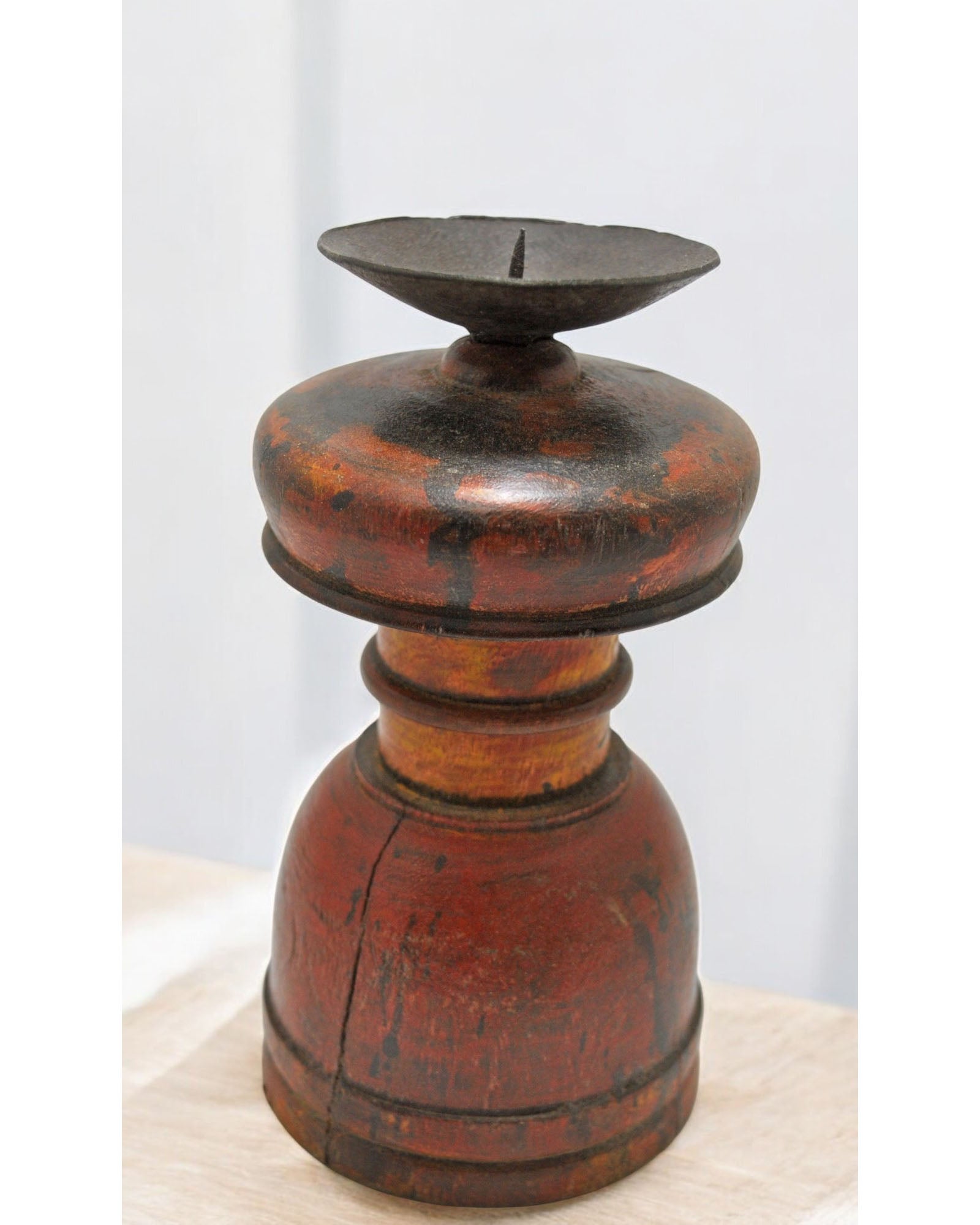 Antique Wooden Paga Leg Candle Holder Original Old Lacquer Painted