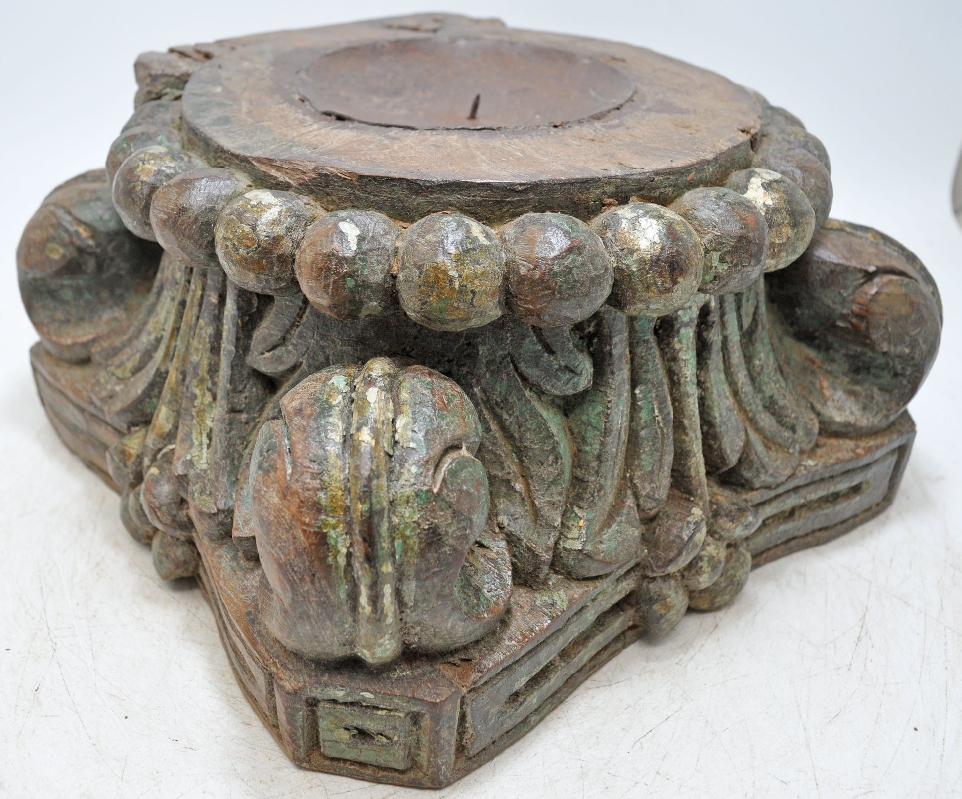 Antique Wooden Pillar Column Base Candle Holder Original Old Fine Hand Carved