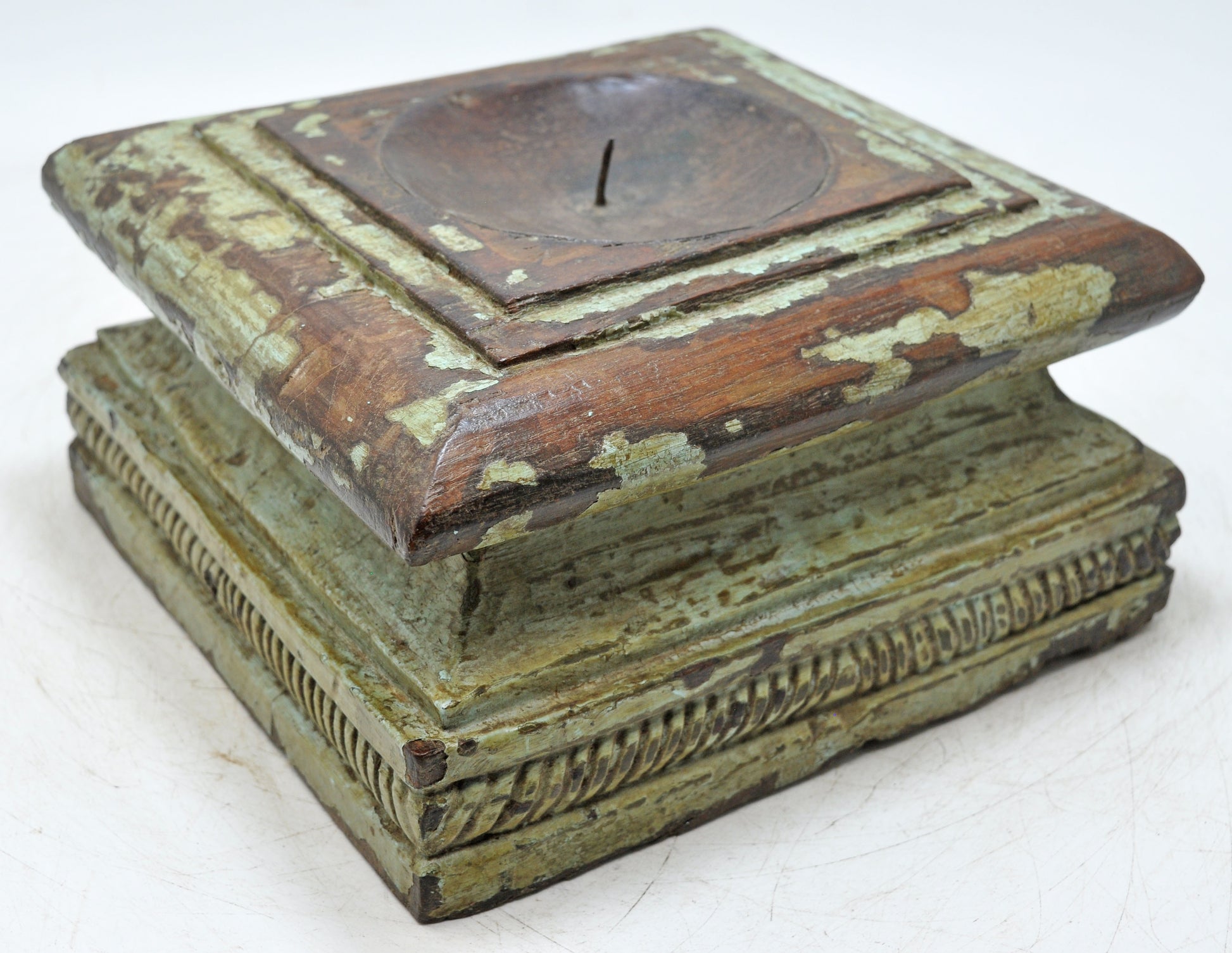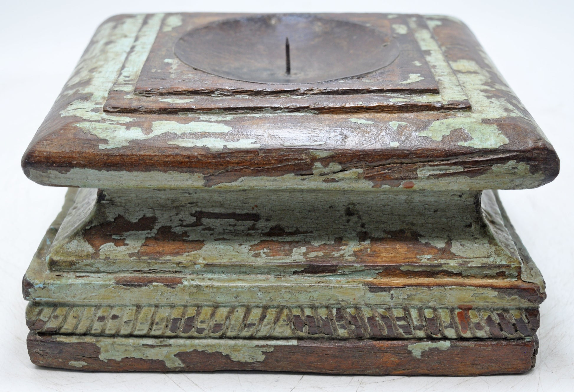 Antique Wooden Pillar Column Base Candle Holder Original Old Hand Carved
