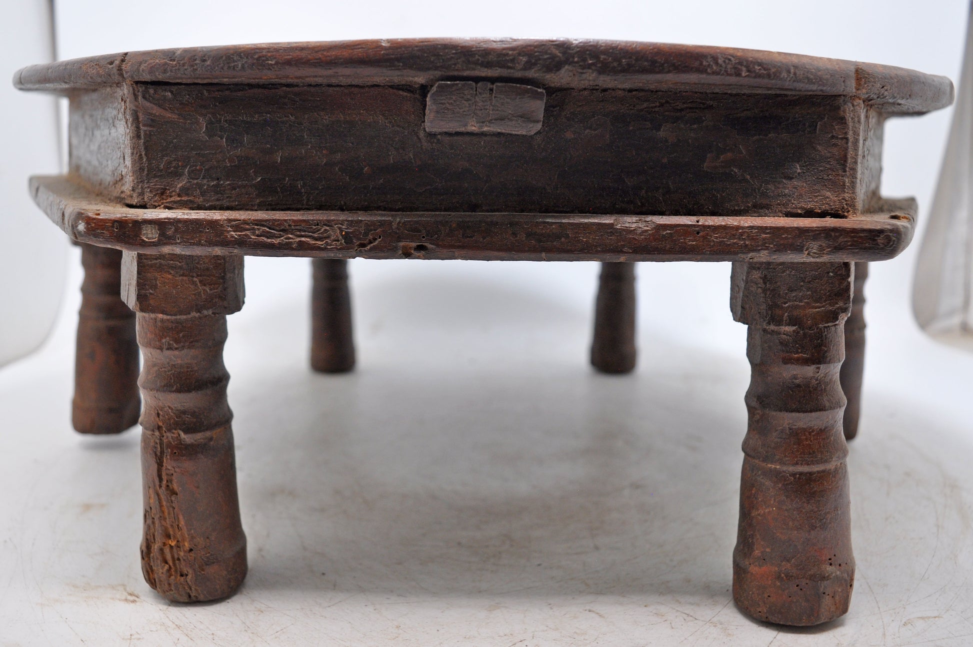 Antique Wooden Round Floor Sitting Bajot Stool Original Old Hand Crafted
