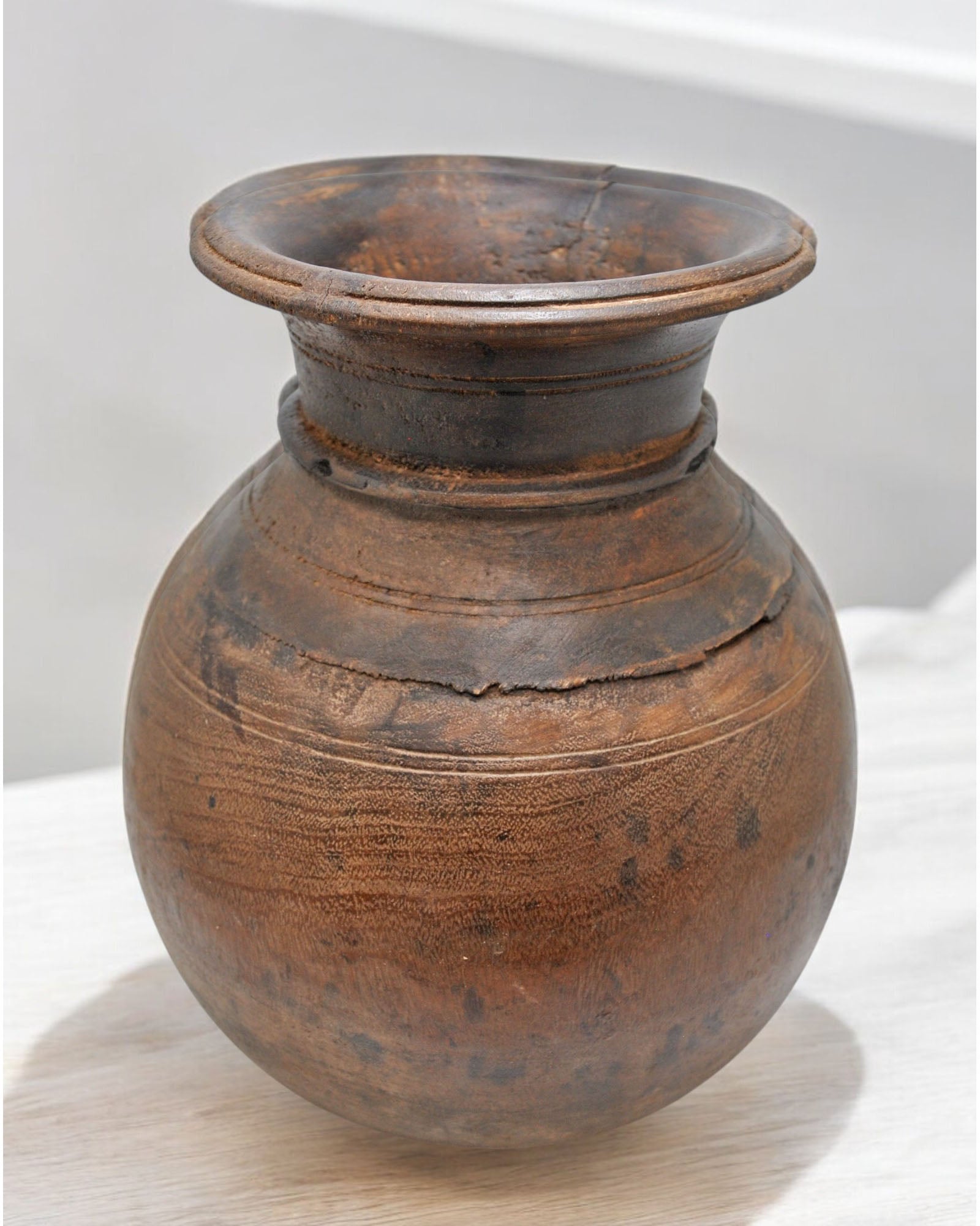 Antique Wooden Round Himalayan Water Pot Original Old Hand Carved