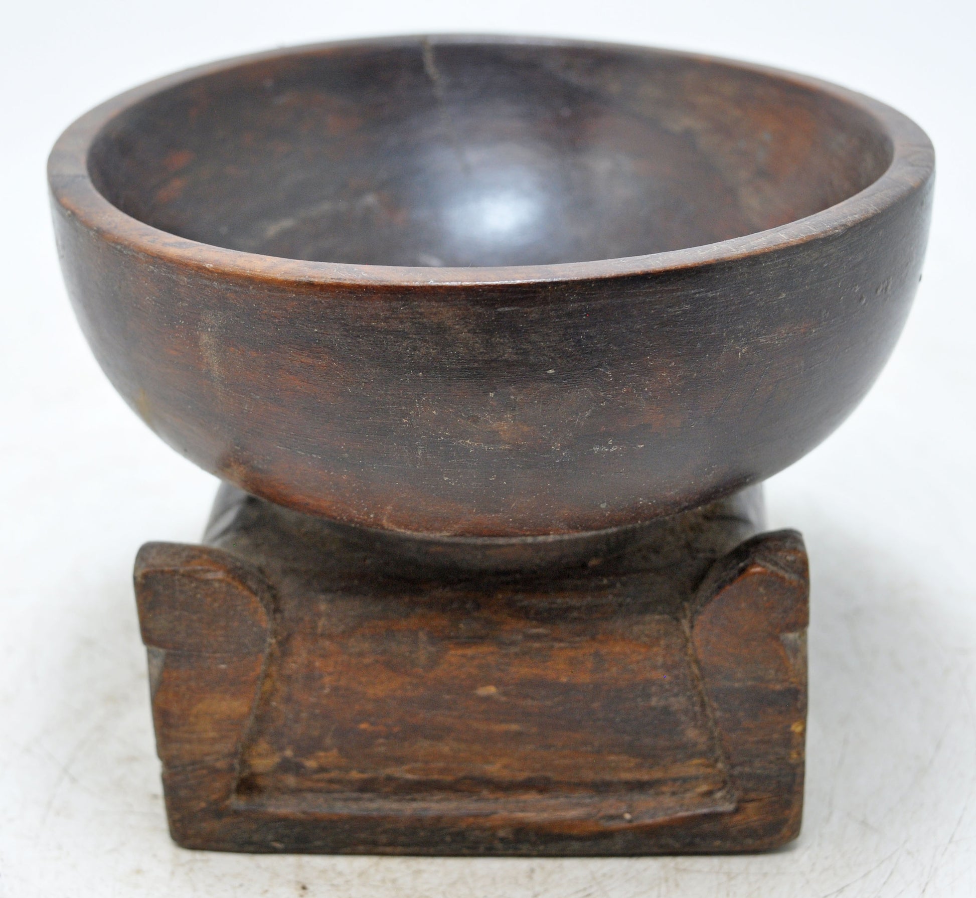 Antique Wooden Round Kitchenware Bowl Original Old Hand Carved