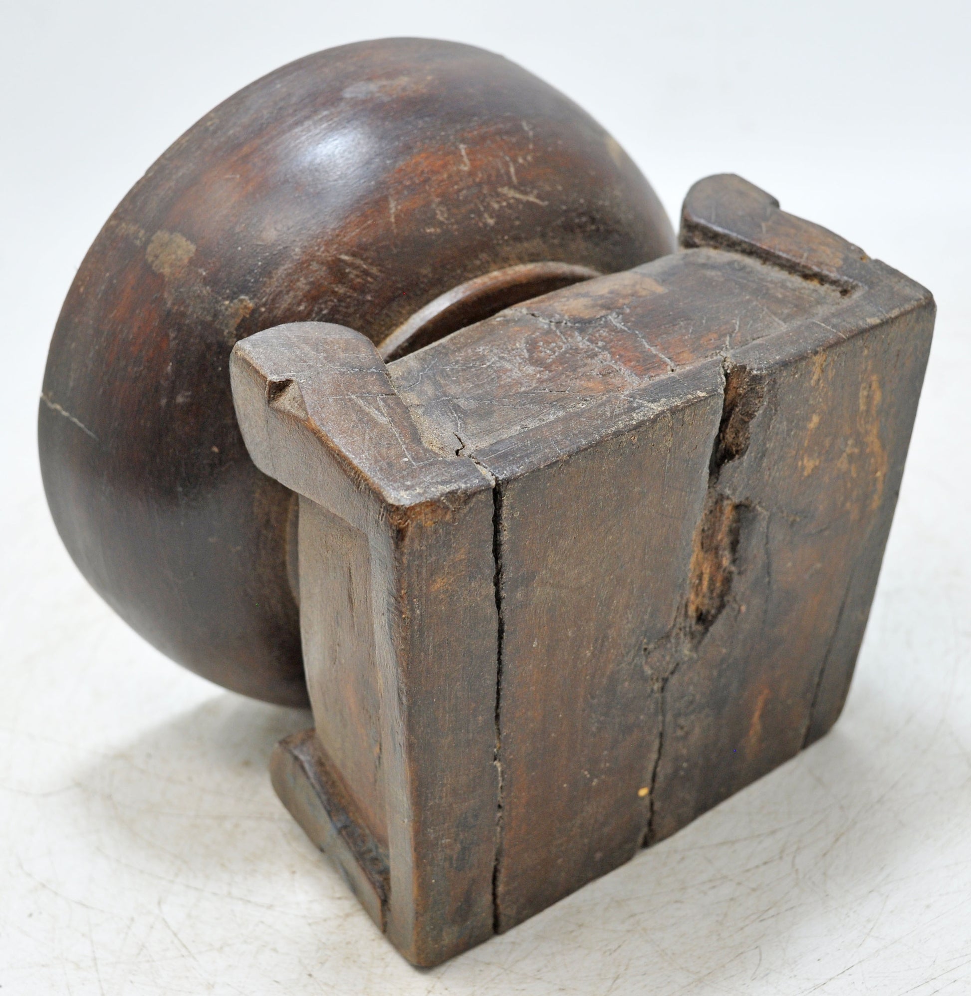 Feast your eyes upon this charming vintage domestic container, skillfully fabricated by carving techniques from the depths of India. Its universally appealing, spherical silhouette is elevated by a distinct, footed bottom, offering stability and visual interest. The material integrity is commendable, reflecting a robust construction that has weathered the passage of many decades. A beautiful, deep-brown coloration covers the exterior and interior, a testimony to its venerable antiquity. This item is a sublime example of functional, unadorned folk artistry.