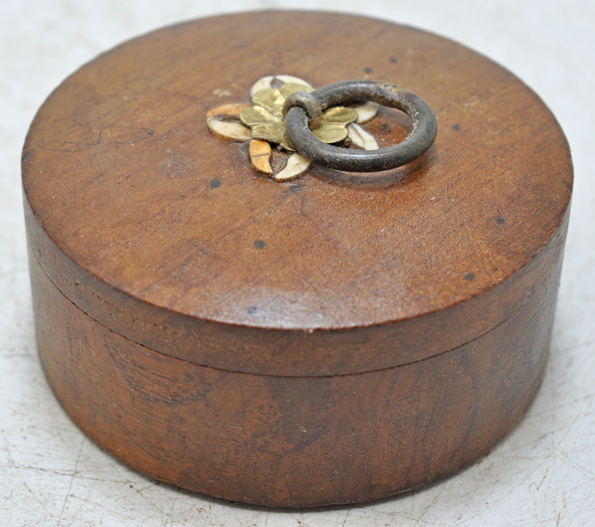Antique Wooden Round Kum Kum Powder Tika Box Original Old