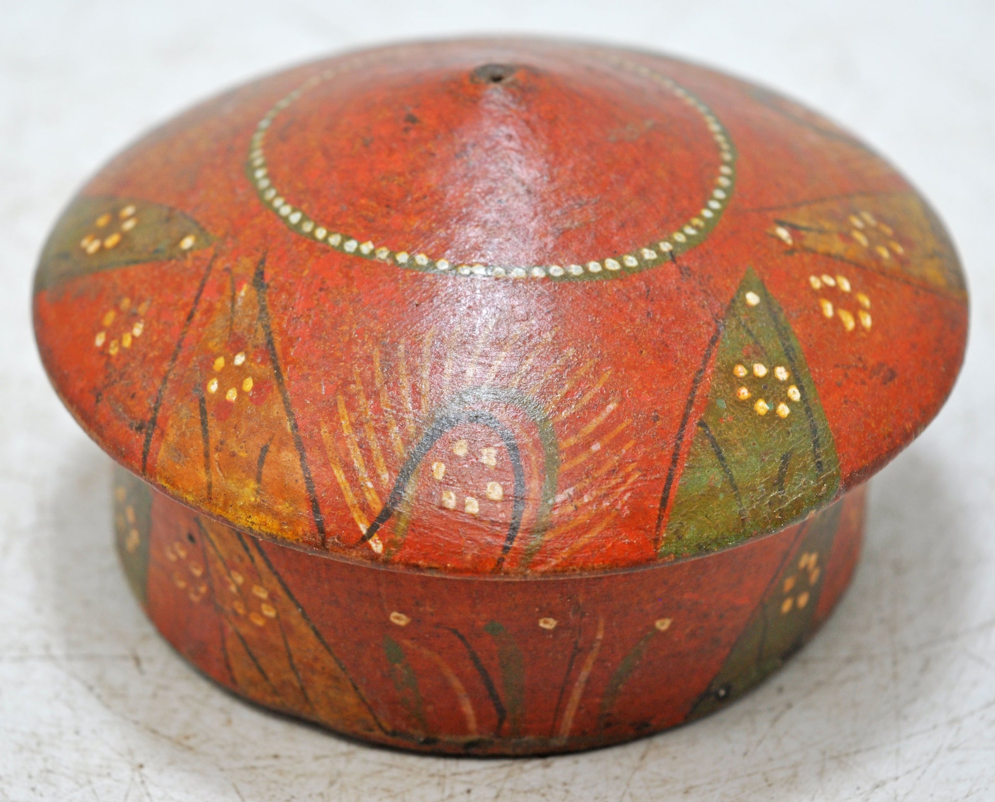 Antique Wooden Round Kum Kum Powder Tika Box Original Old Lacquer Painted