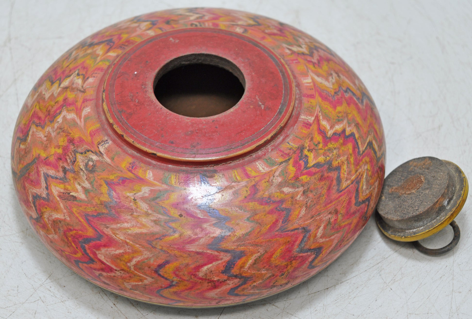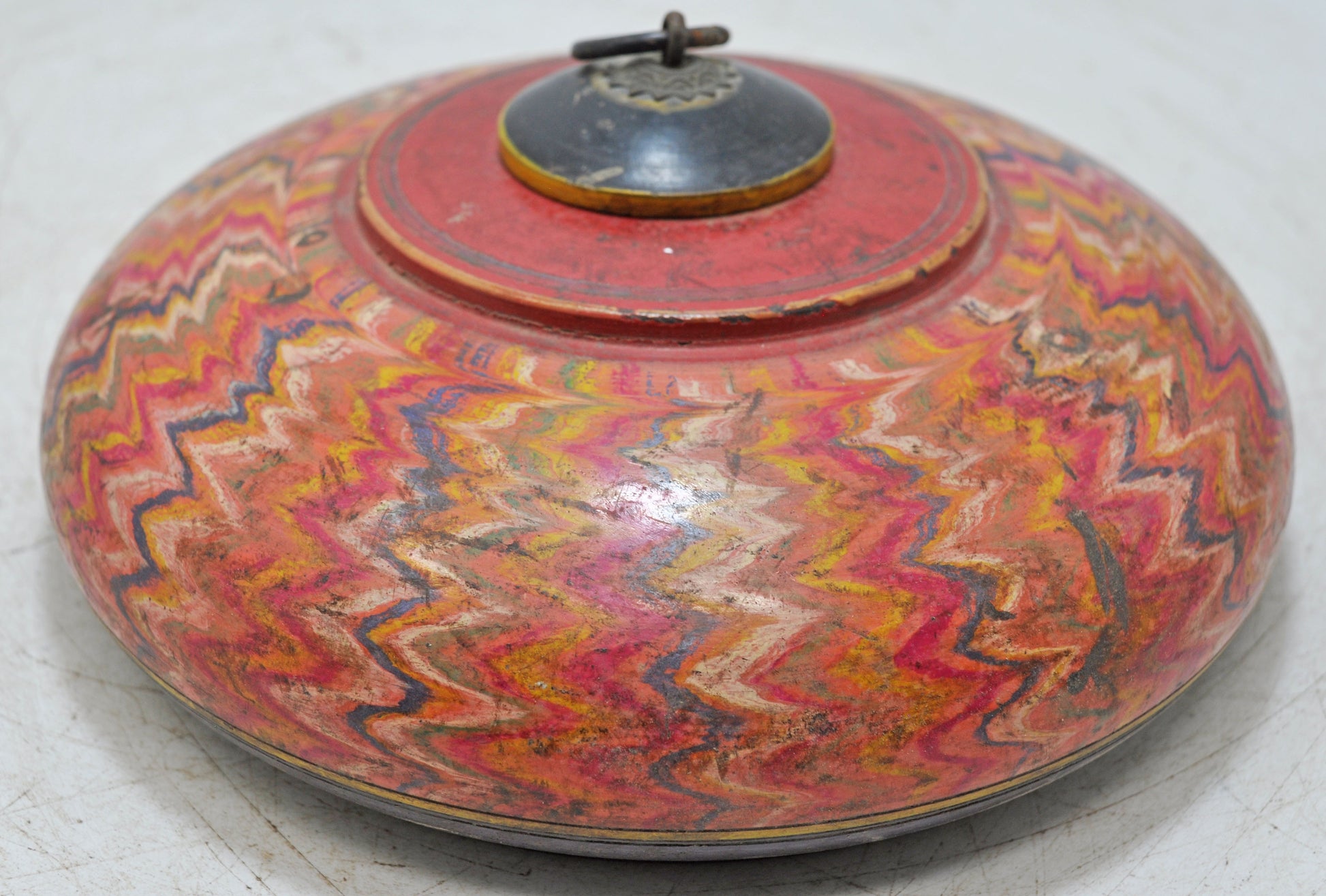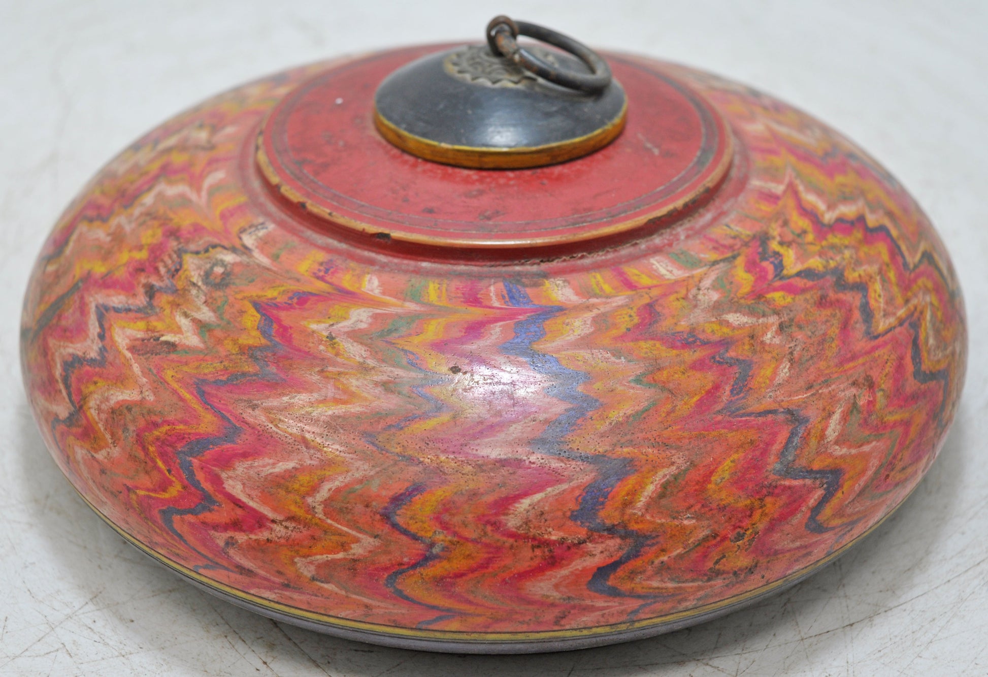 Antique Wooden Round Opium Tobacco Box Original Old Hand Crafted Painted