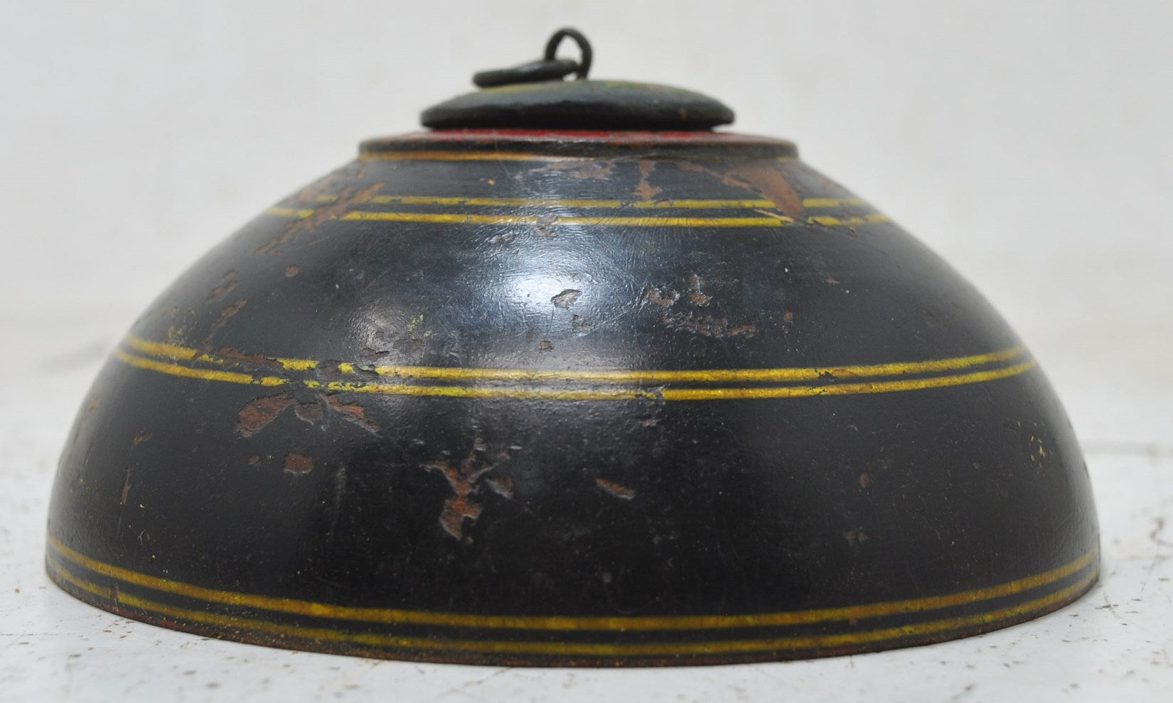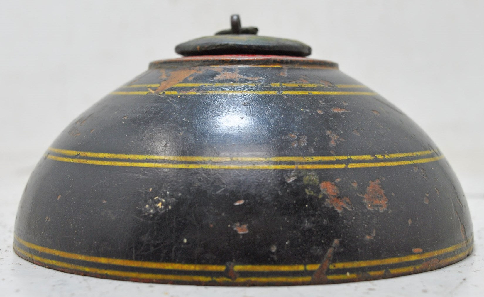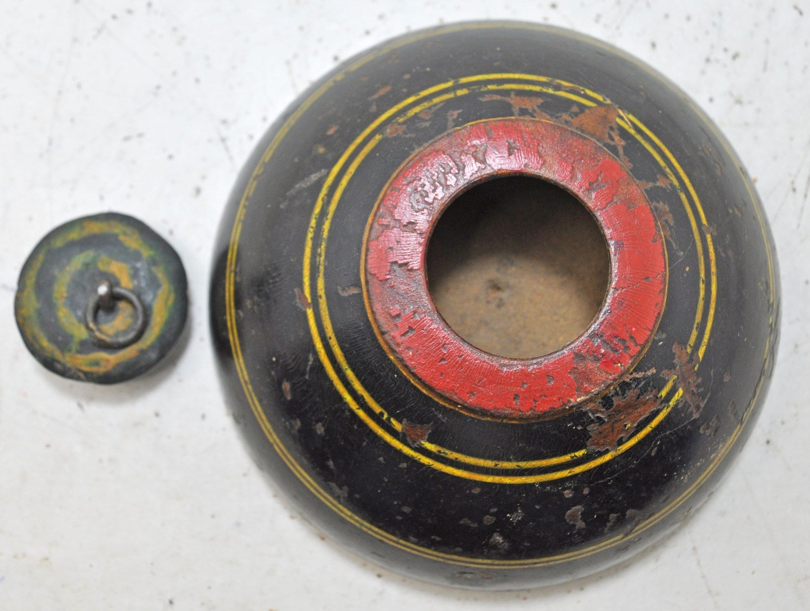 Antique Wooden Round Tobacco Opium Box Original Old Hand Carved Painted