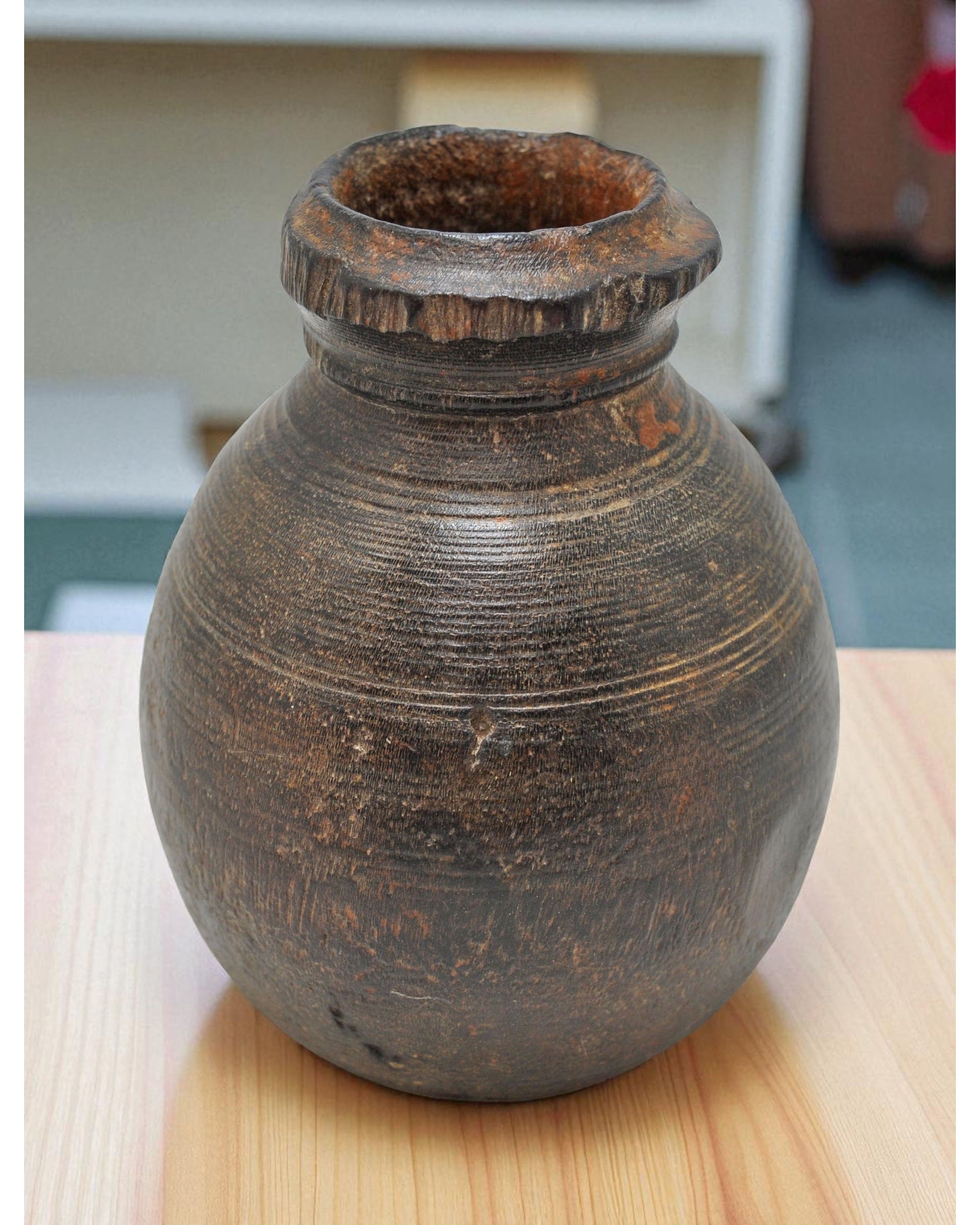 Antique Wooden Small Round Water Drinking Pot Original Old Hand Carved