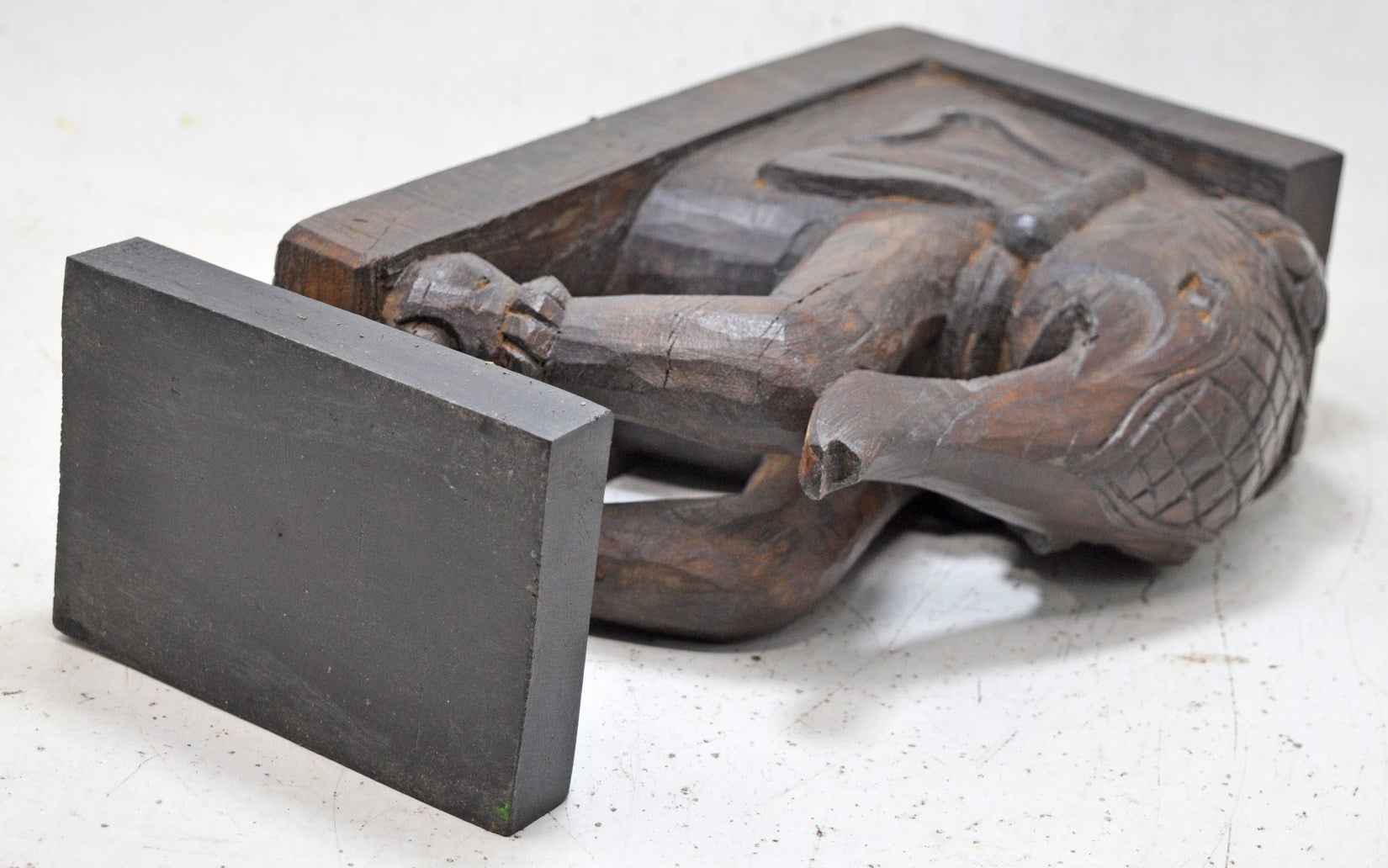 A beautiful old wooden large size elephant figurine originally used as a wall bracket. Hand carved with fine details. Good condition and a rich patina. Origin India.