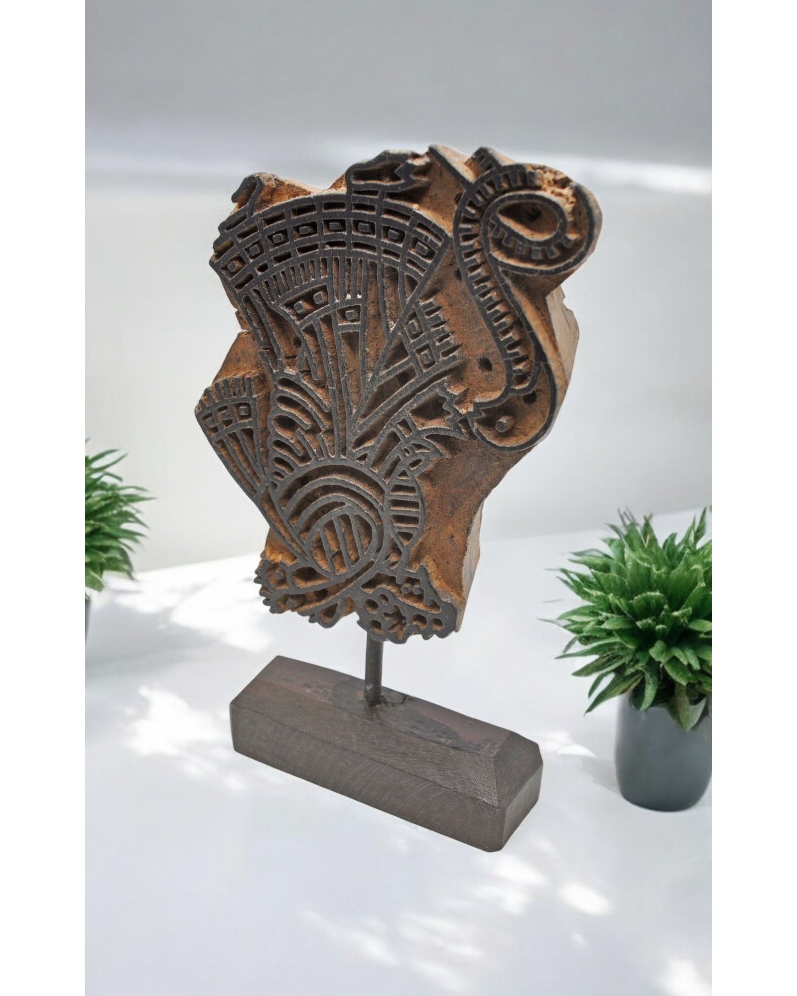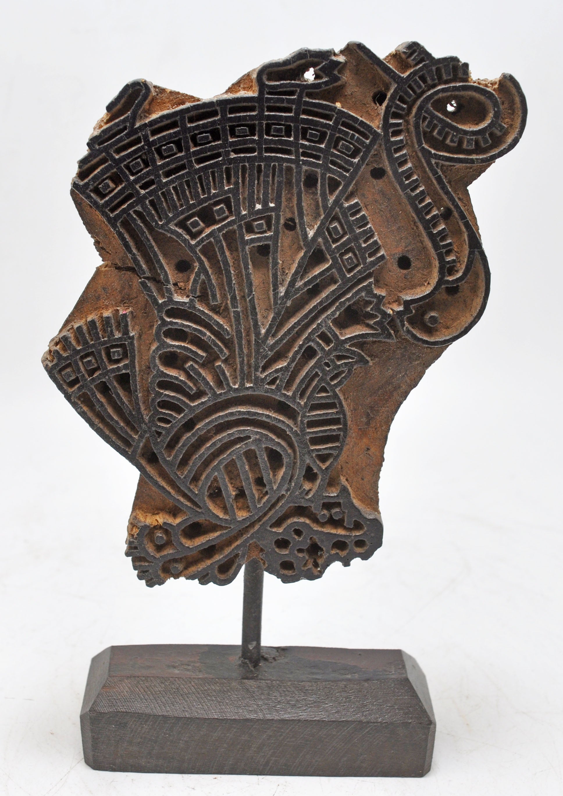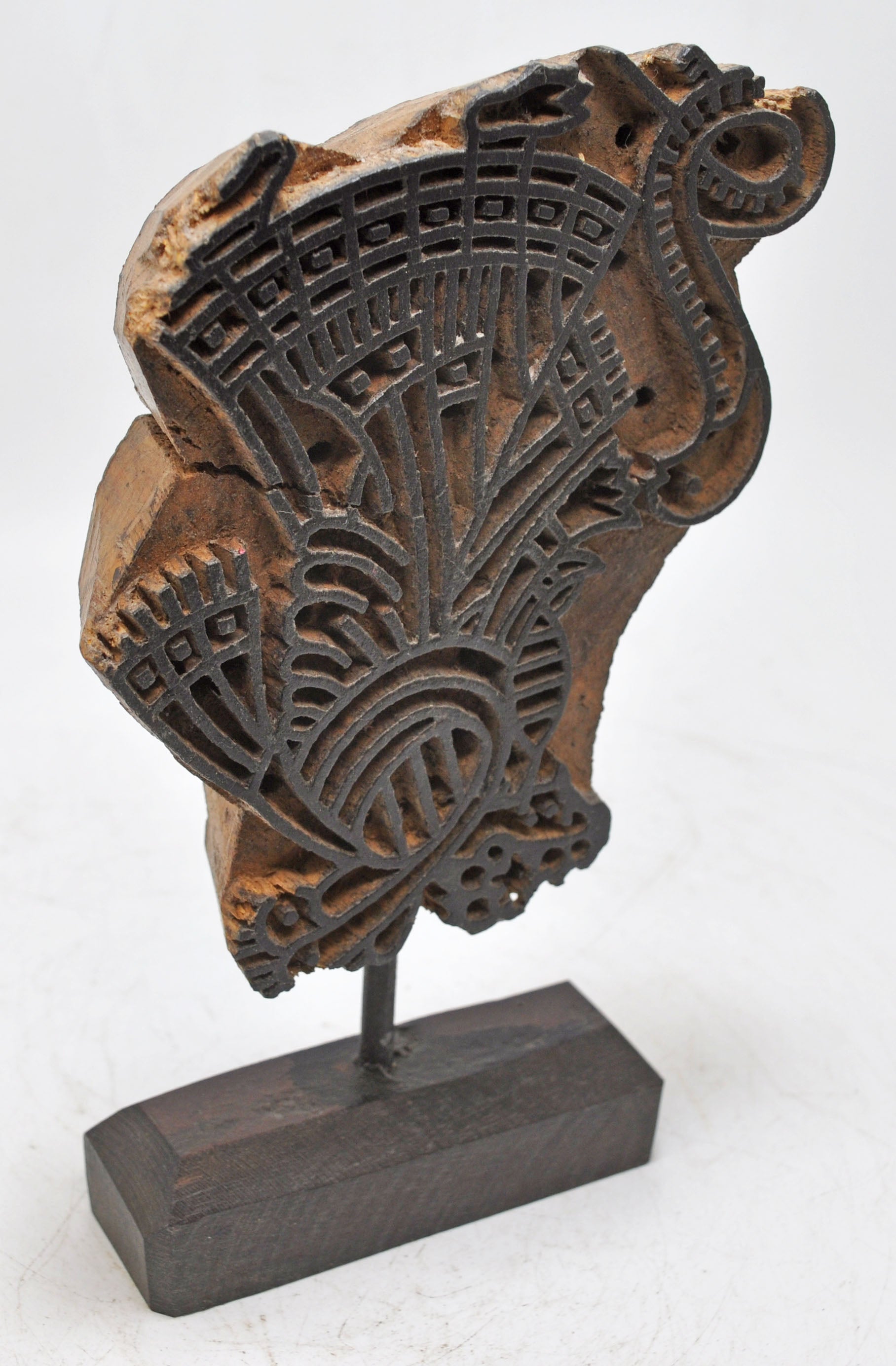 Antique Wooden Textile Printing Block Carving on Stand Original Old Fine Hand Carved